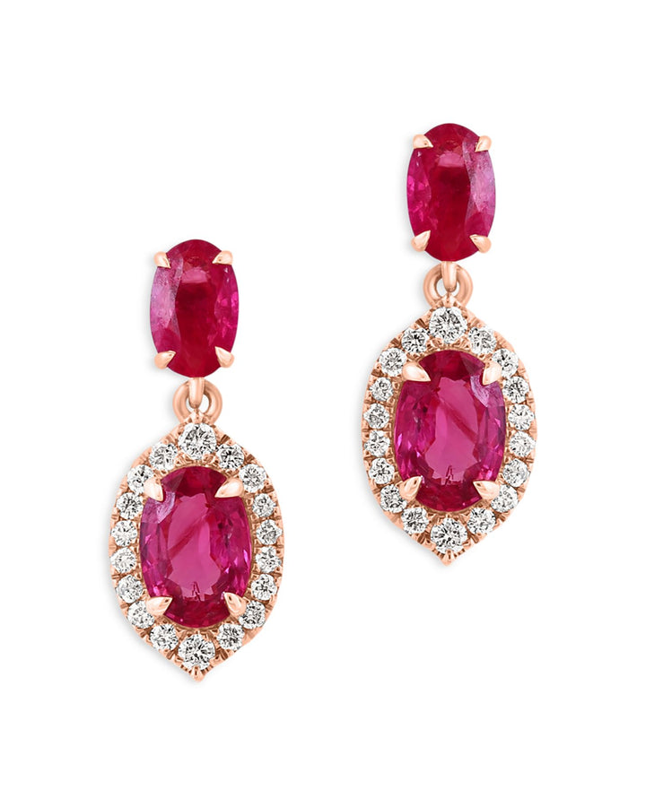 Ruby & Diamond Drop Earrings in 14K Rose Gold - Exclusive