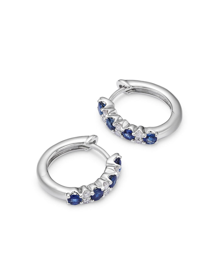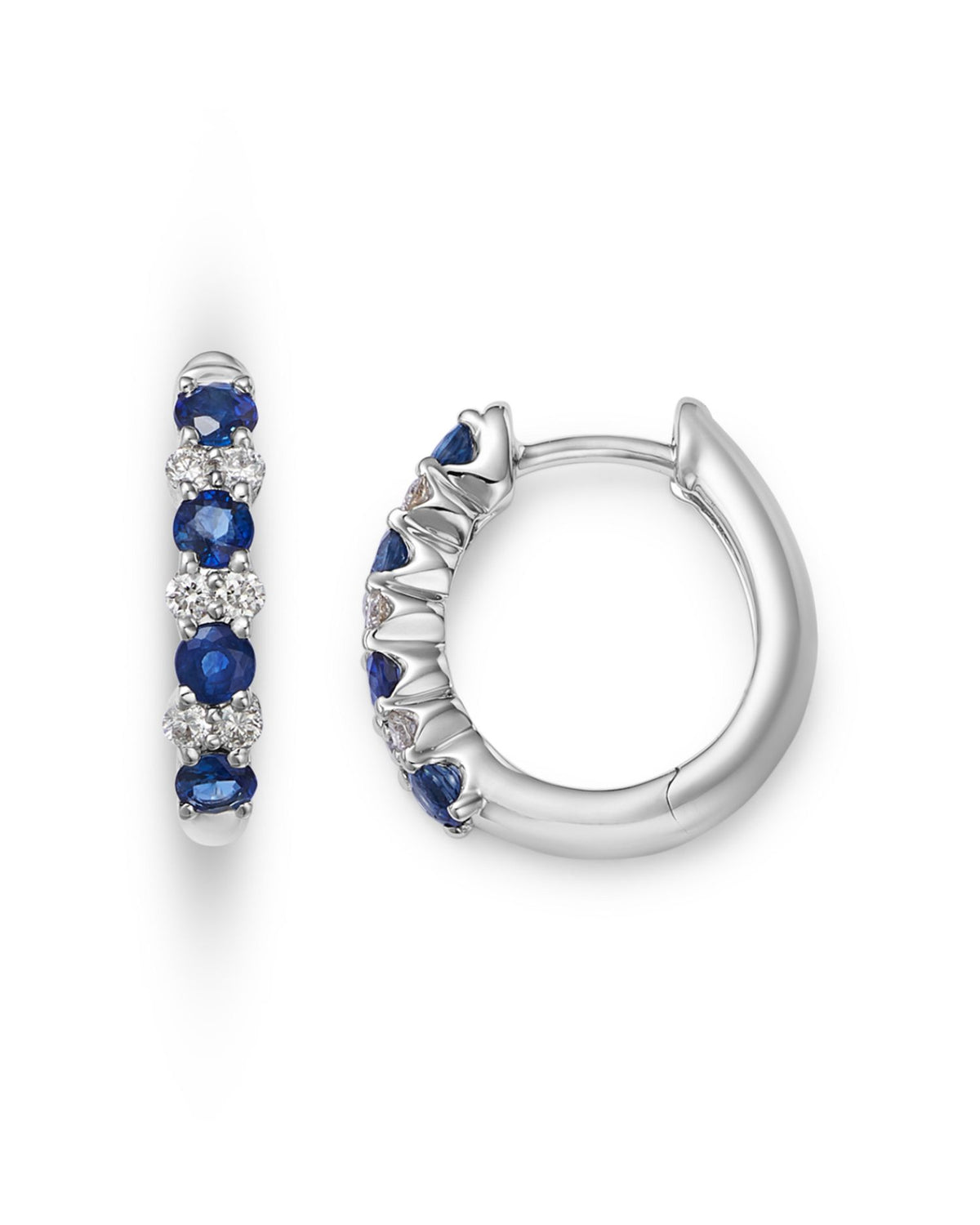 The Blue Sapphire & Diamond Huggie Hoop Earrings in 14K White Gold from Bloomingdale's Fine Collection combine elegance and sparkle. The rich blue sapphires are complemented by the radiant diamonds, creating a harmonious and striking effect. The small huggie hoop design offers a comfortable fit while maintaining an upscale, sophisticated look—perfect for both day and night wear.