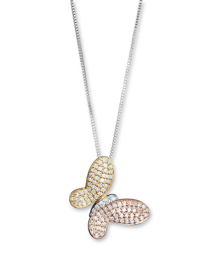 Diamond Pavé Butterfly Pendant in 14K White, Yellow and Rose Gold, 0.40 ct. t.w. - Exclusive
