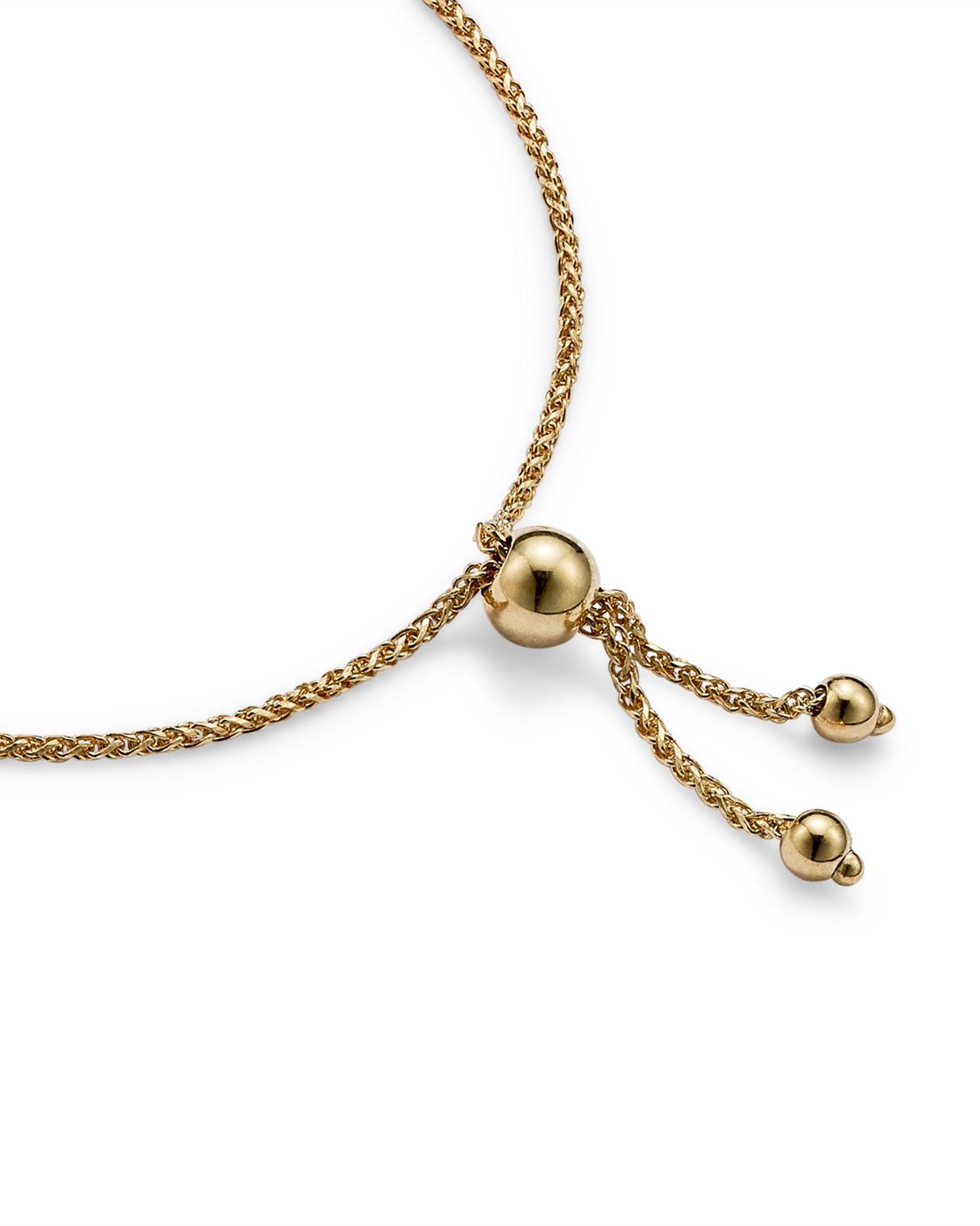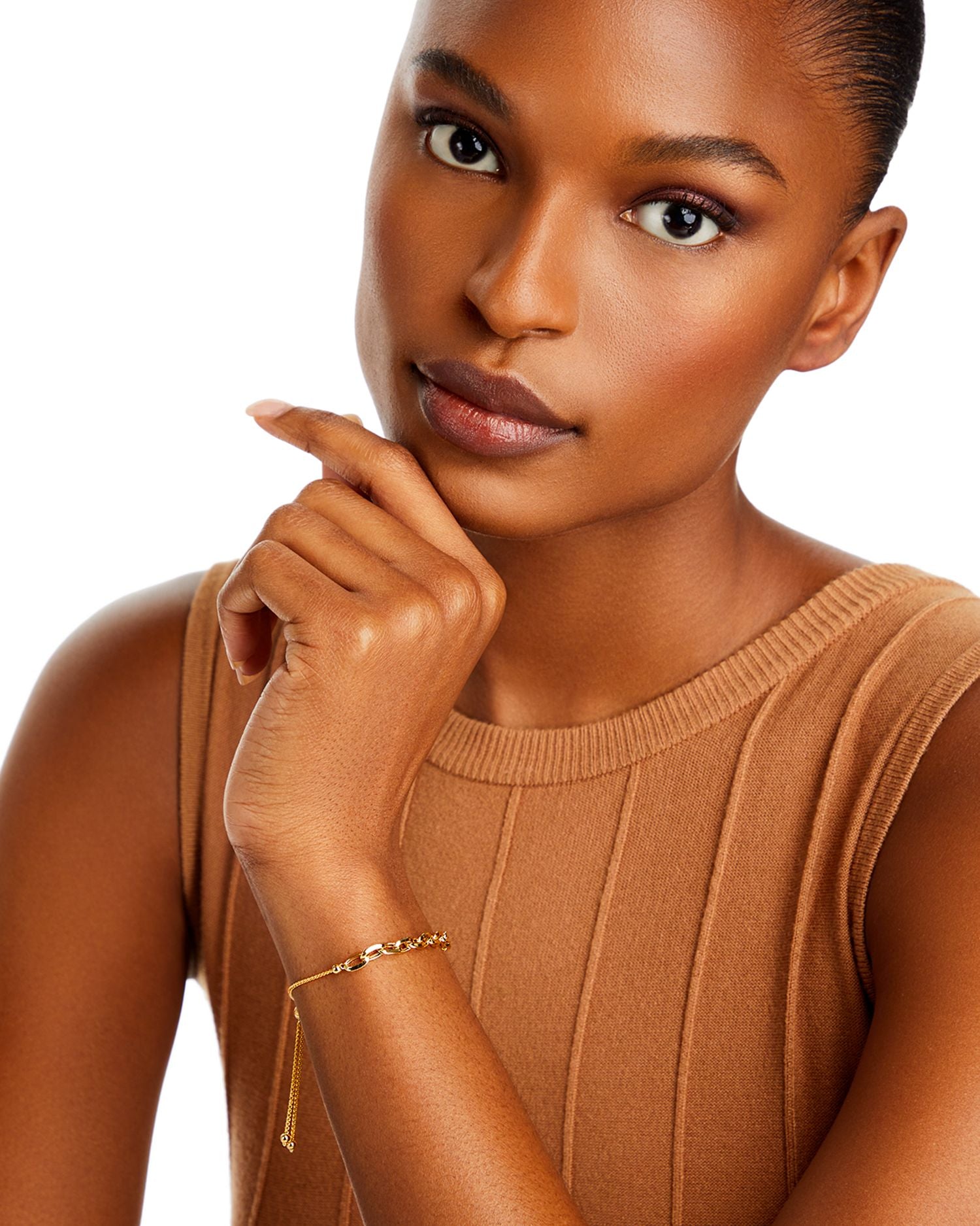 Crafted from 14K yellow gold, this bracelet features an adjustable length and is secured with a bolo clasp closure. All gemstone carat weights (ct. t.w.) are approximate, with a variance of 0.05 carat. Made in Turkey.