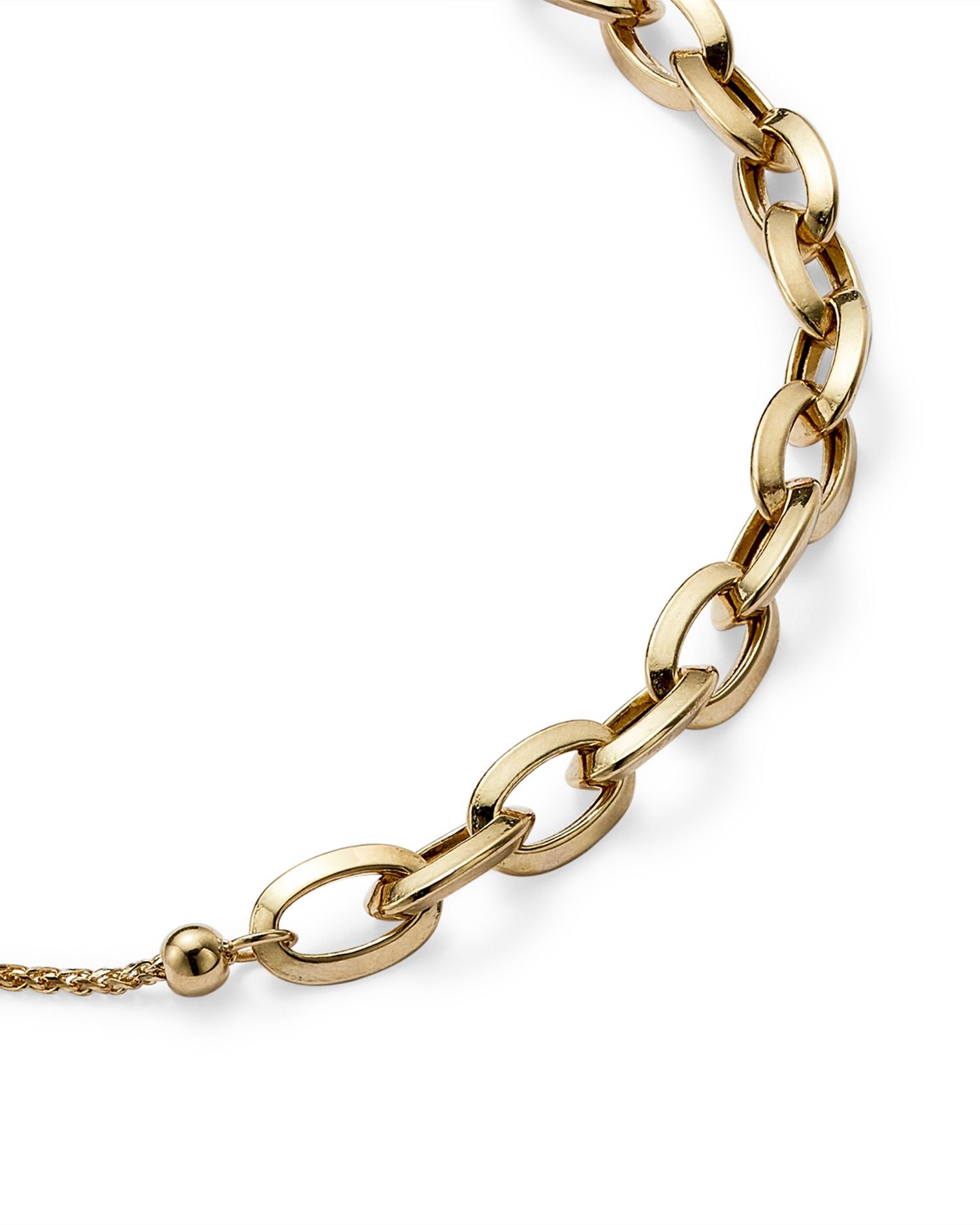 The Large Link Bolo Bracelet in 14K Yellow Gold from Bloomingdale's Fine Collection features a series of large polished oval links that give the bracelet a bold and stylish look. The bolo clasp allows for an adjustable fit, making it a versatile accessory that can be worn day or night.