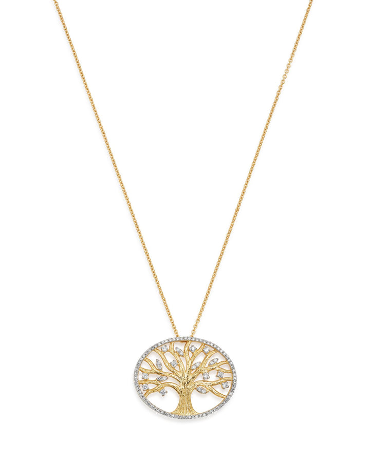 The Diamond Tree of Life Pendant in 14K Yellow Gold from Bloomingdale's Fine Collection symbolizes growth, strength, and connection. The intricate tree design is adorned with 0.40 ct. t.w. diamonds that shimmer beautifully, making this pendant both meaningful and luxurious. A perfect gift or personal statement piece.