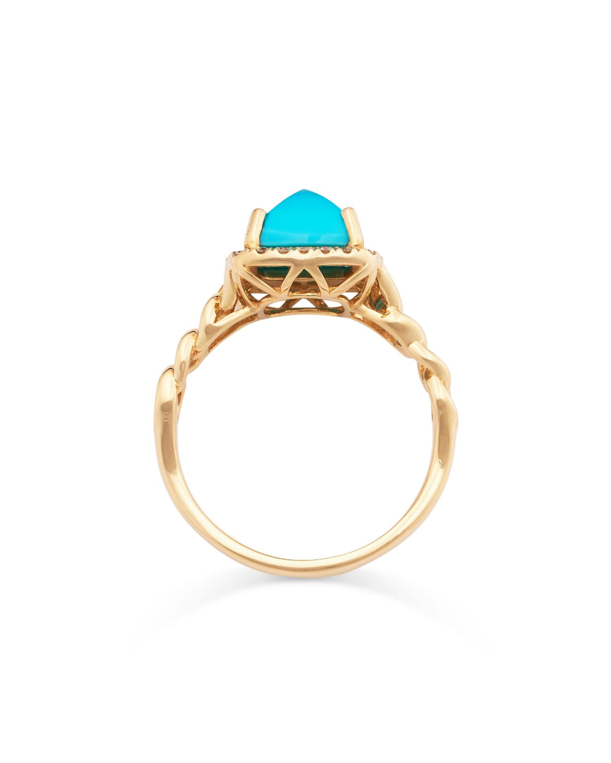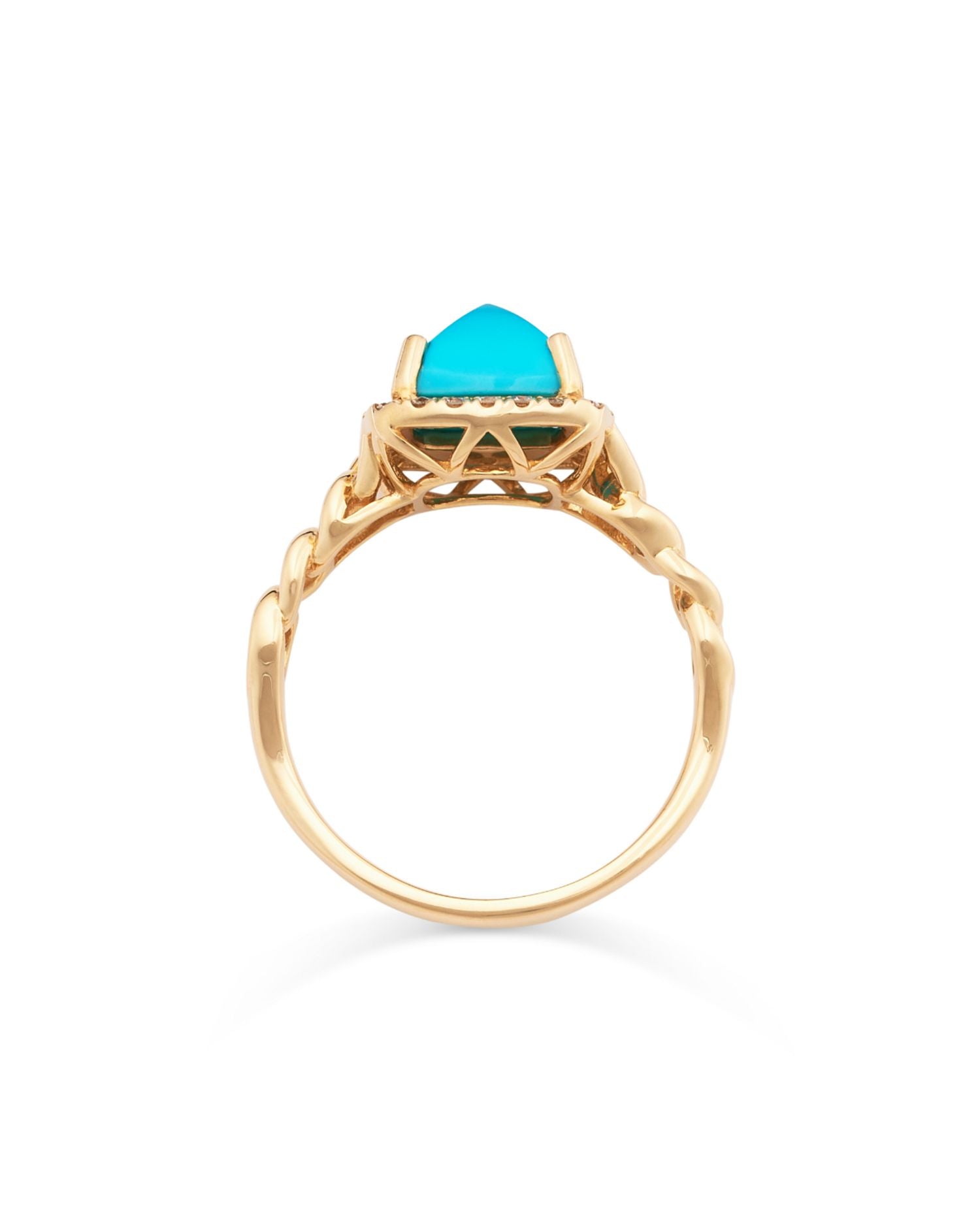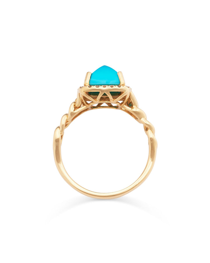 Turquoise & Diamond Halo Ring in 14K Yellow Gold