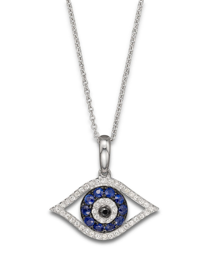 Diamond and Blue Sapphire Evil Eye Pendant Necklace in 14K White Gold, 18' - Exclusive