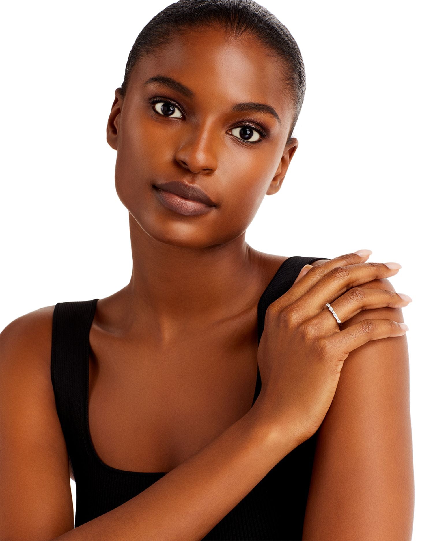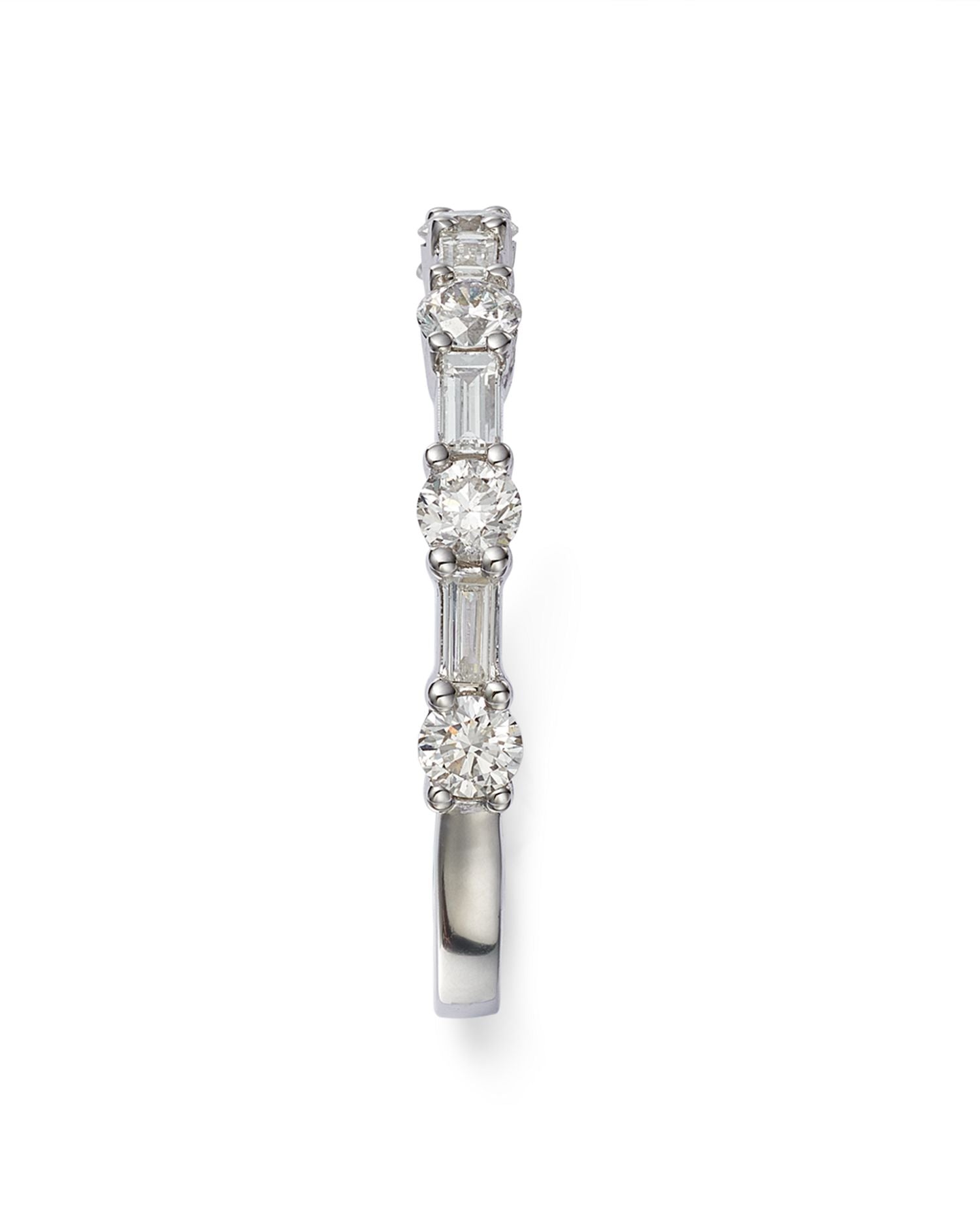 This Diamond Baguette & Round Band by Bloomingdale's Fine Collection is an elegant and modern take on a classic band. Featuring a combination of round and baguette diamonds (0.50 ct. t.w.) set in lustrous 14K white gold, this ring offers a sophisticated way to express your love or enhance your collection of fine jewelry.