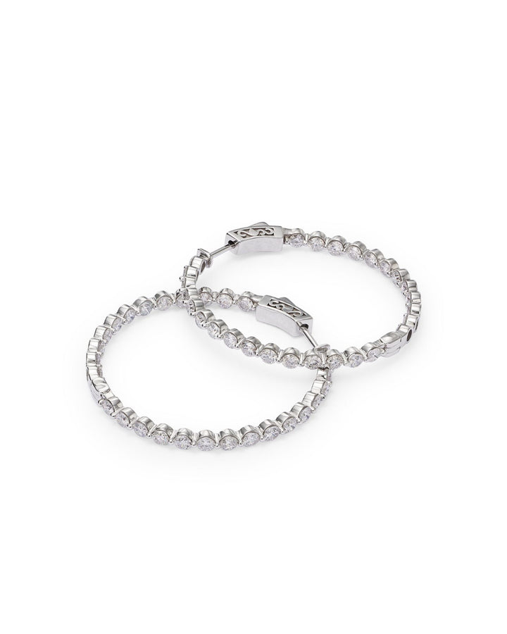 Diamond Inside Out Medium Hoop Earrings in 14K White Gold, 4.0 ct. t.w.