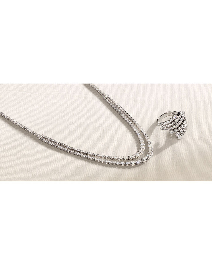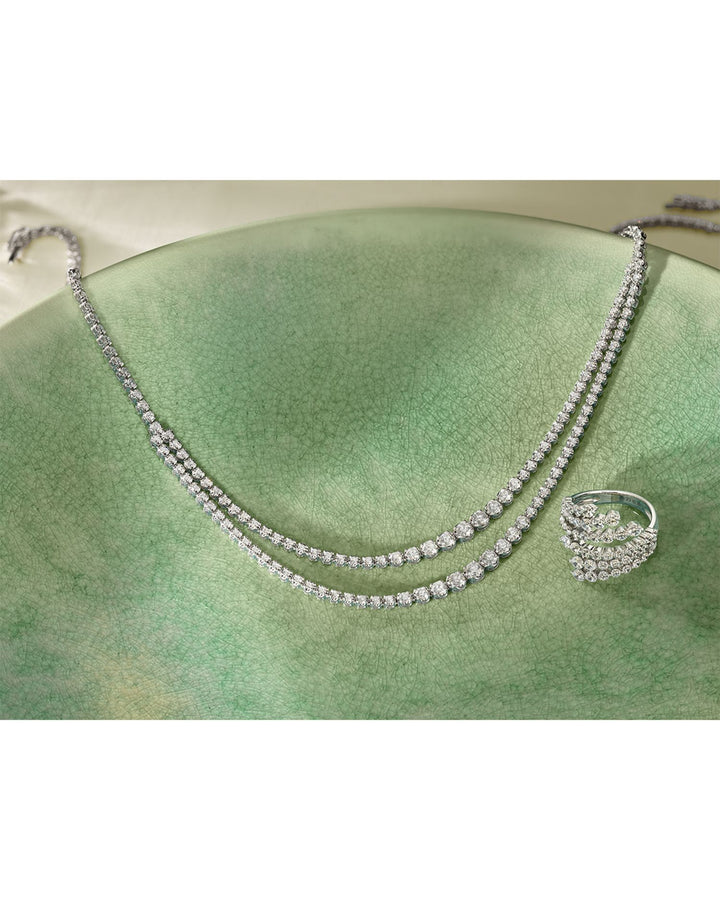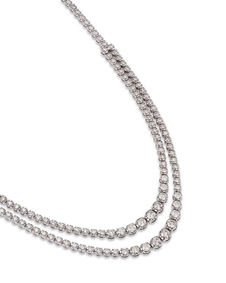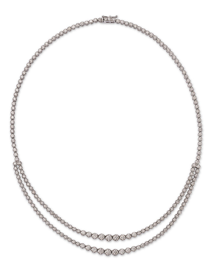 The Diamond Crown Set Double Row Tennis Necklace from Bloomingdale's Fine Collection is the epitome of luxury. Featuring crown-set diamonds arranged in two breathtaking rows, this tennis necklace is a timeless statement piece that radiates elegance and sophistication.
