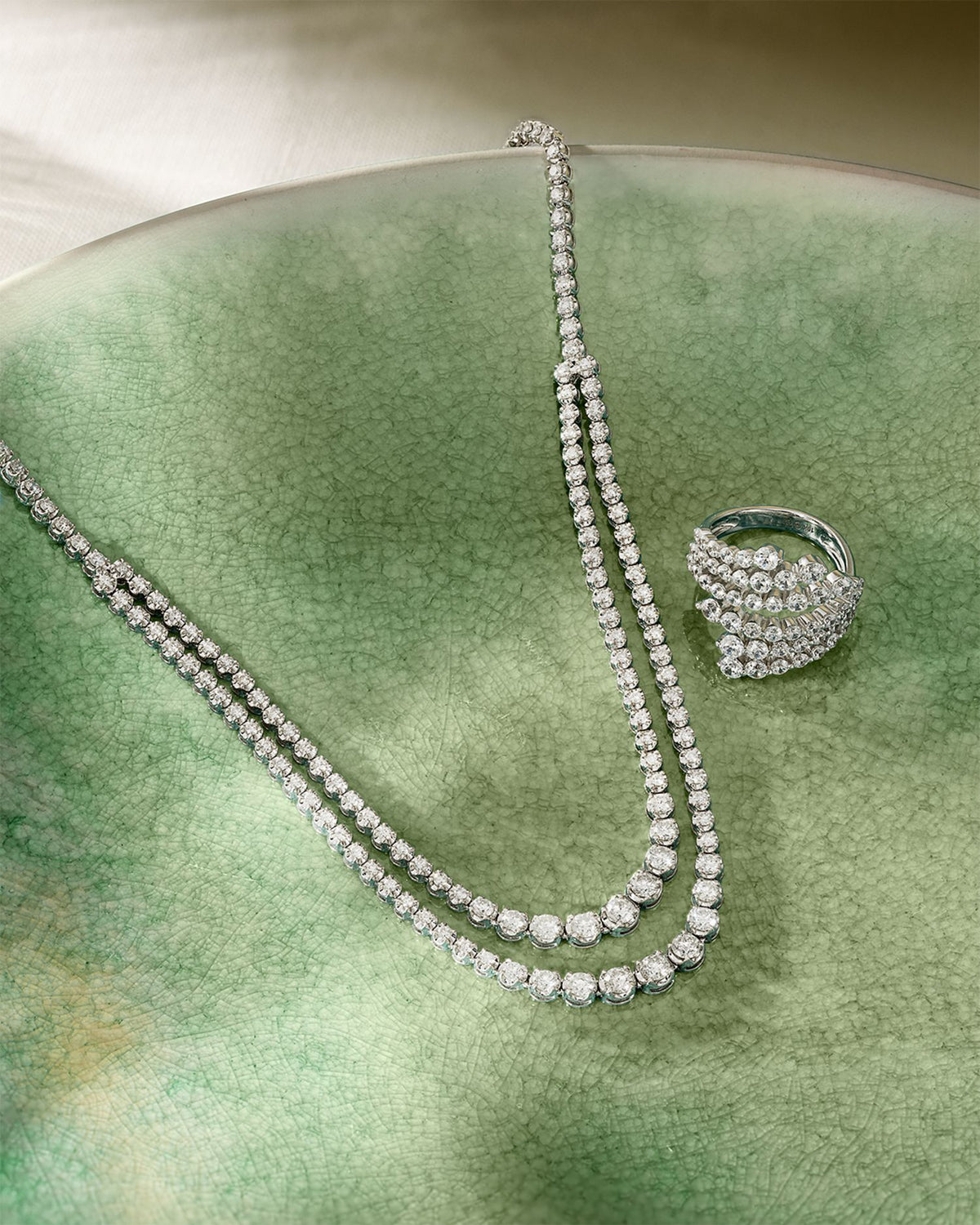 Bloomingdale's Fine Collection offers sophisticated jewelry to suit every taste, outfit, and occasion. For over three decades, their buyers have traveled the world, partnering with skilled artisans and leading designers to craft exquisite, show-stopping pieces befitting the Bloomingdale's name. The result is a line of covetable styles that are made to be mixed and layered, allowing for personalized expression. Combining elegance with modern design, the collection features stunning gemstones and precious metals.