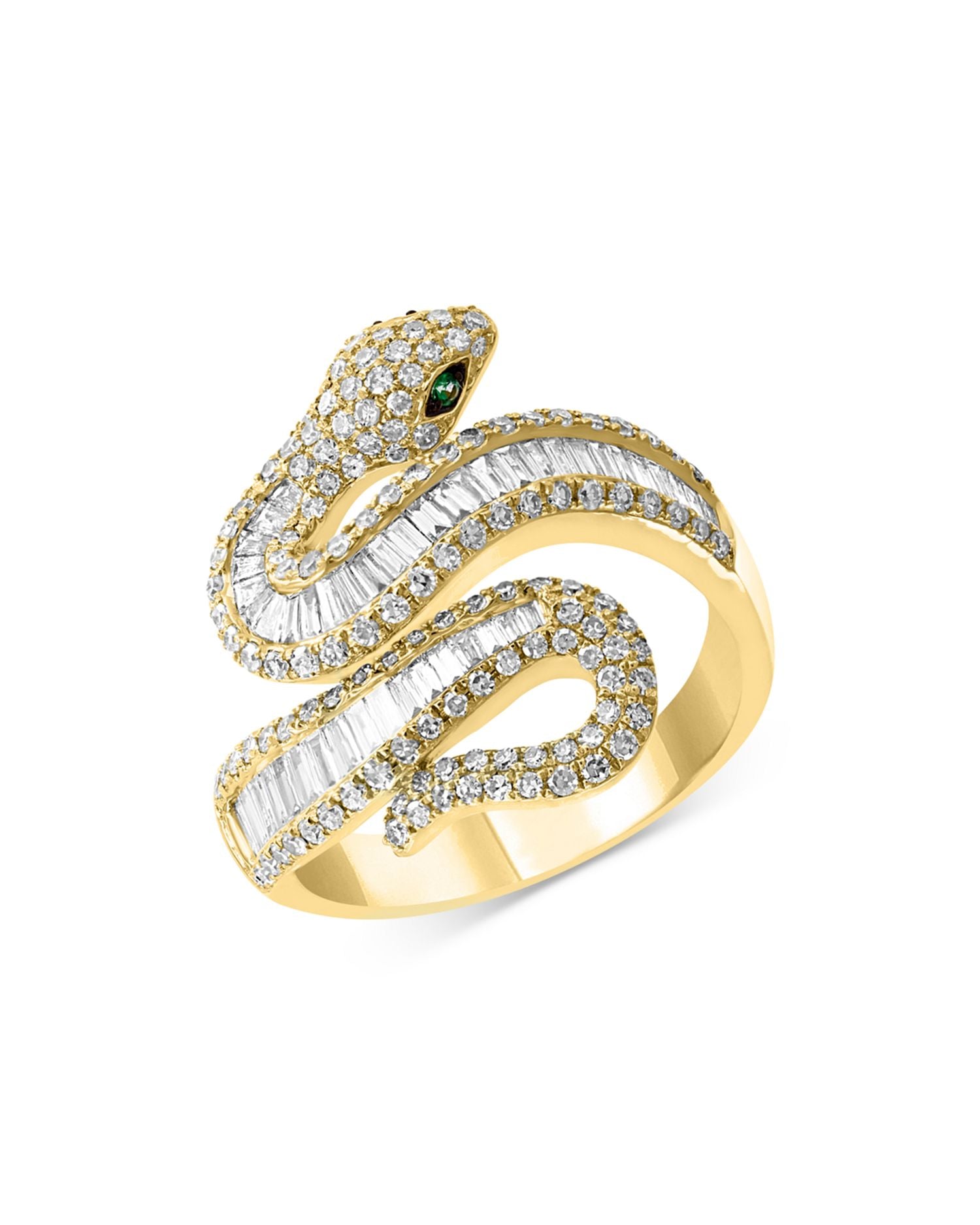Emerald & Diamond Snake Ring in 14K Yellow Gold - Exclusive