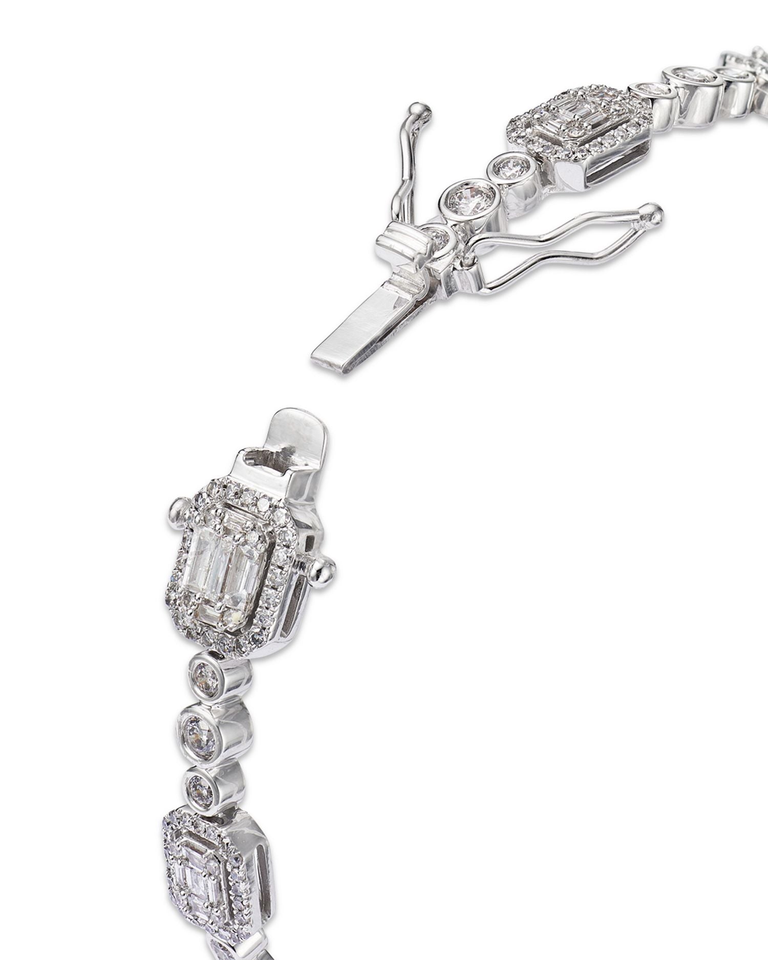 Made with 3.0 ct. t.w. of diamonds (HI/I1-I2 clarity) set in 14K white gold. Bracelet measures 7'L and features a box lock clasp closure. White gold is surface-coated with rhodium to enhance metal color and shine; it may wear off over time requiring replating.