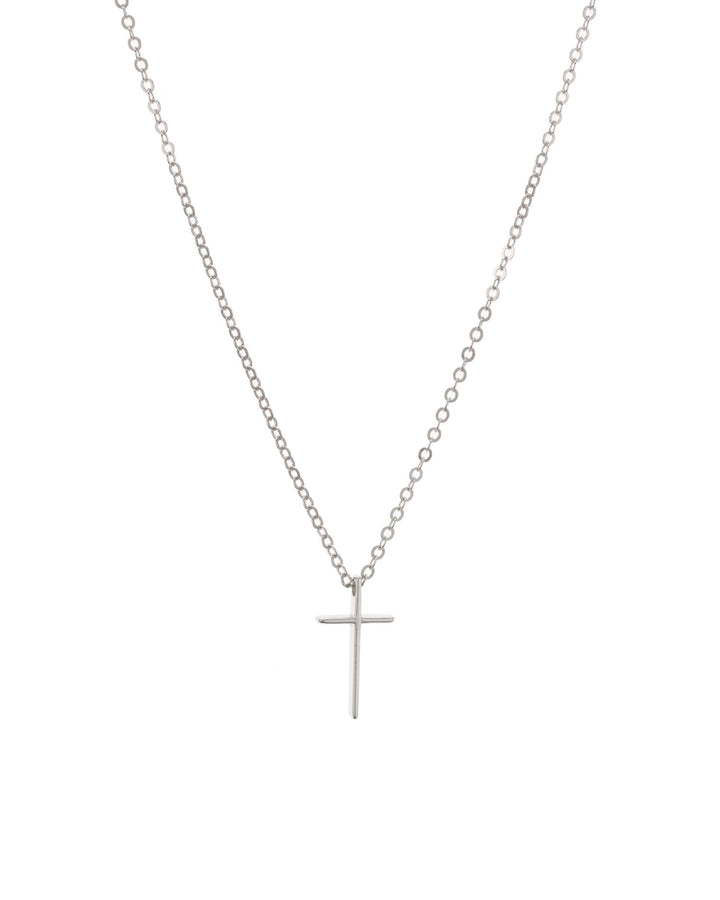 Handcrafted in sterling silver with a swedged cross pendant, measuring 0.6' in length. The 18' chain is secured with a lobster clasp closure. Some silver jewelry may be surface-coated with rhodium for added shine, which may require replating over time. Made in the USA.