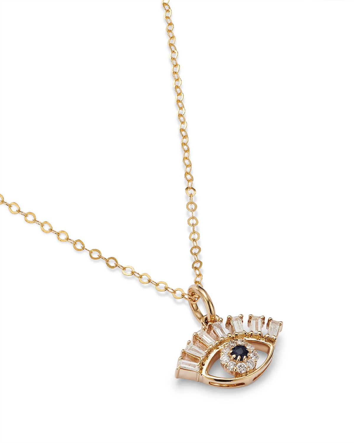 Diamond & Blue Sapphire Evil Eye Pendant Necklace in 14K Yellow Gold, 18' - Exclusive