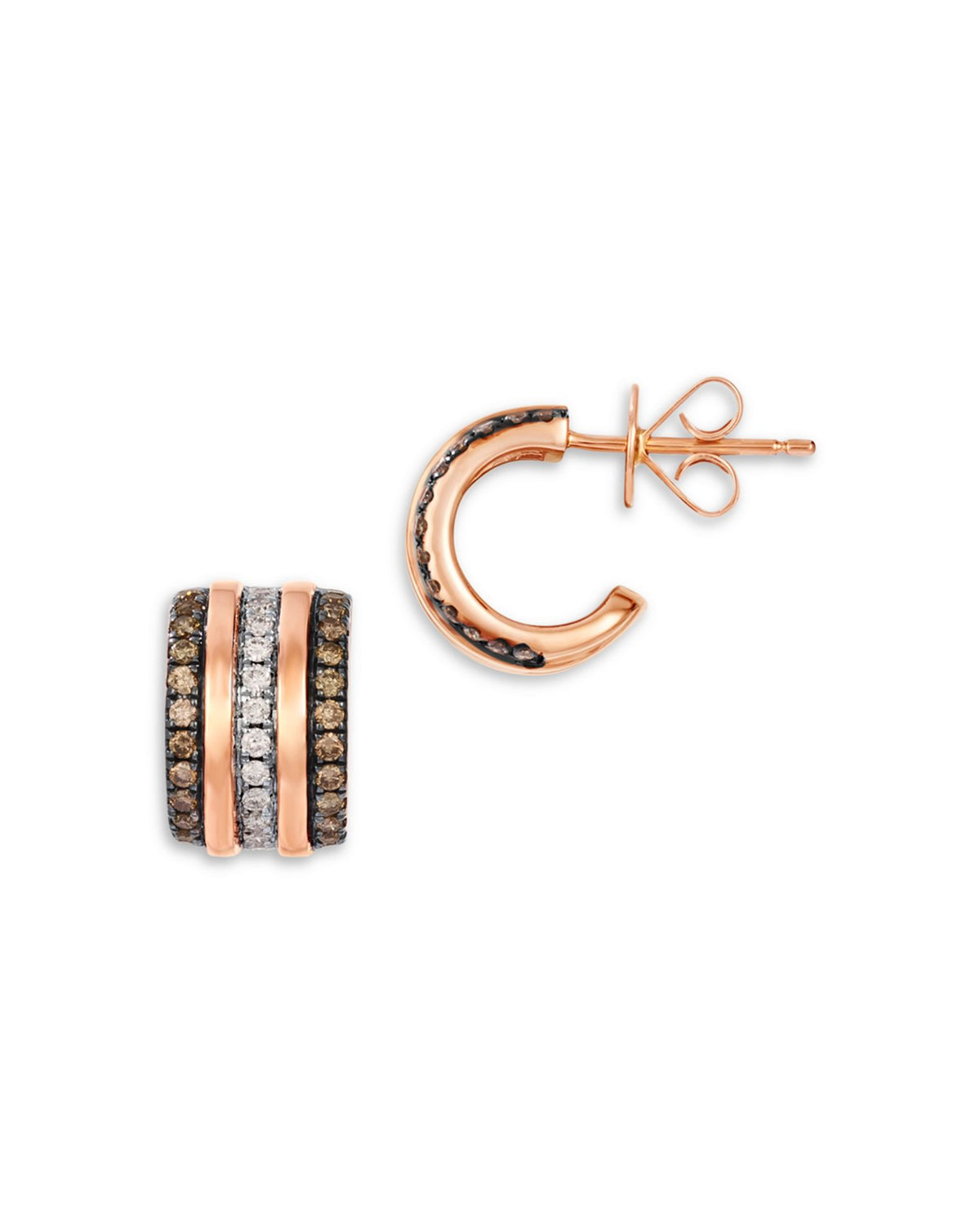 Brown & White Diamond Huggie Hoop Earrings in 14K Rose Gold, 0.51 ct. t.w.