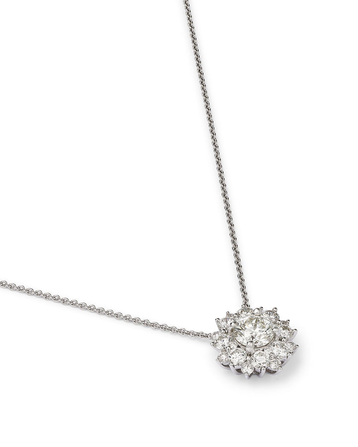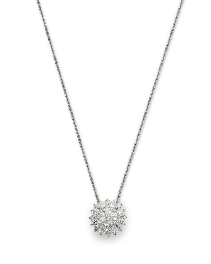 Diamond Cluster Pendant Necklace in 18K White Gold, 1.65 ct. t.w.
