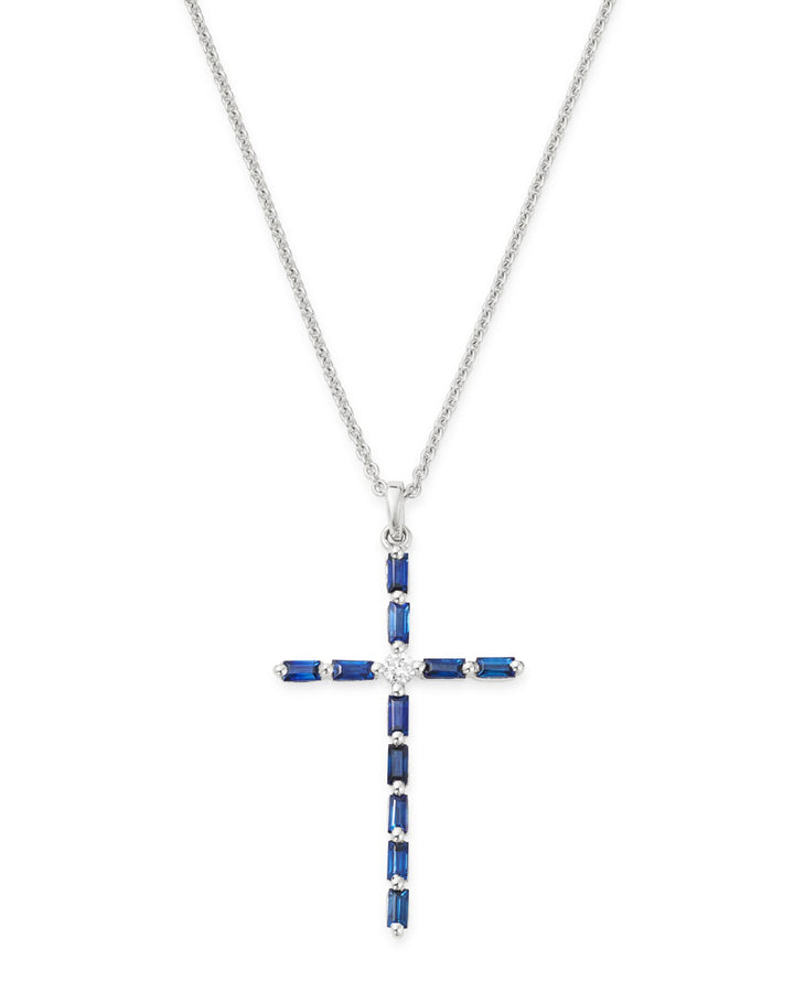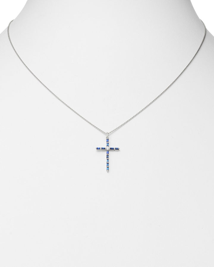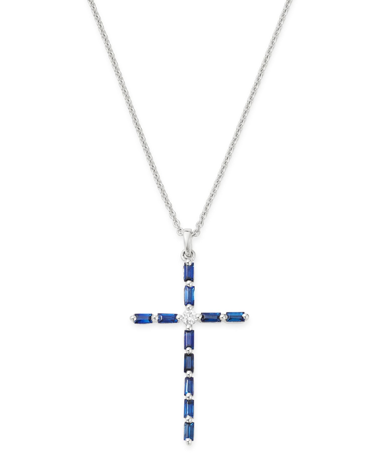 Blue Sapphire & Diamond Cross Pendant Necklace in 14K White Gold, 18' - Exclusive