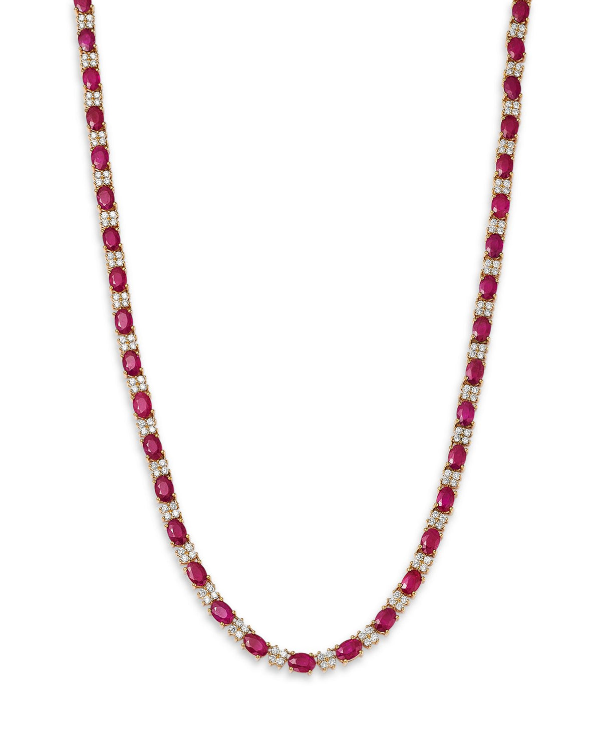 Ruby & Diamond Tennis Necklace in 14K Yellow Gold, 16'