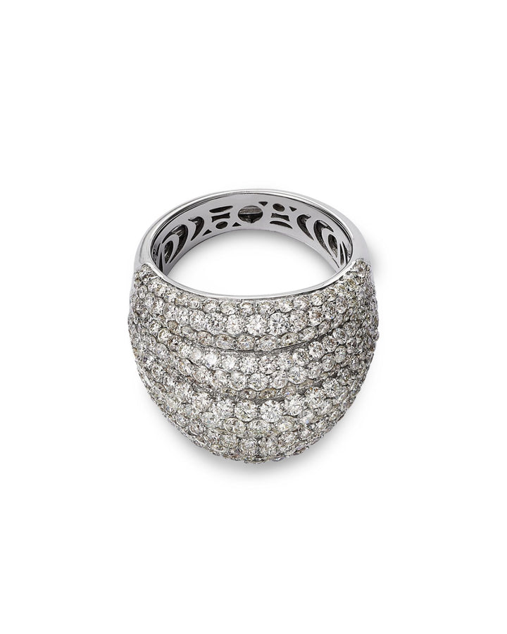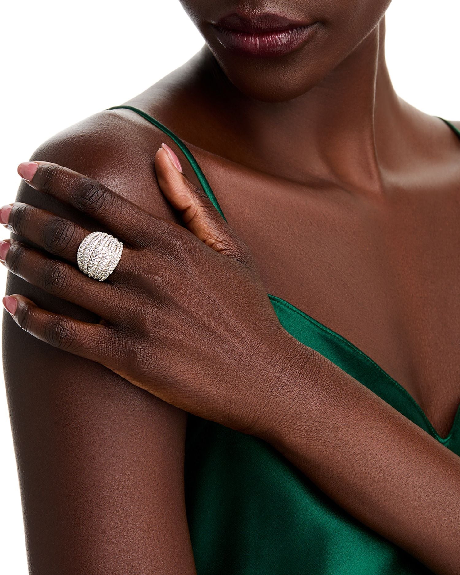 This Pavé Diamond Statement Ring by Bloomingdale's Fine Collection is a dazzling showstopper, featuring row upon row of pavé diamonds that create a bold and captivating look. Perfect for making an unforgettable impression.