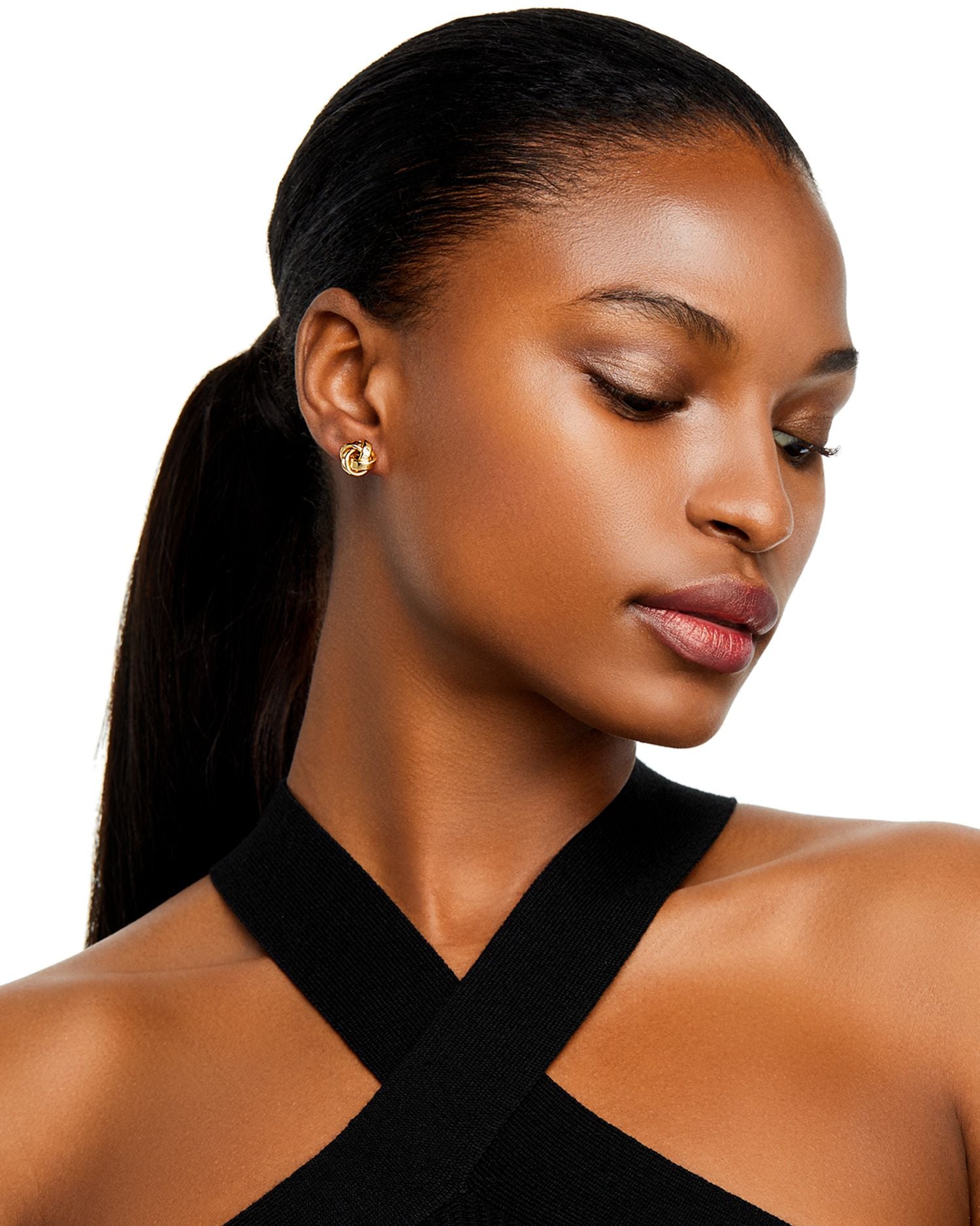 These Love Knot Stud Earrings by Bloomingdale's Fine Collection are a symbol of elegance and unity. Featuring a polished love knot design, these earrings capture light beautifully, offering a classic yet sophisticated look perfect for any occasion.
