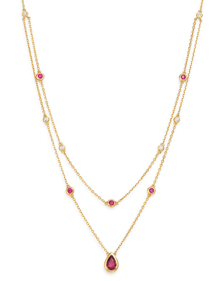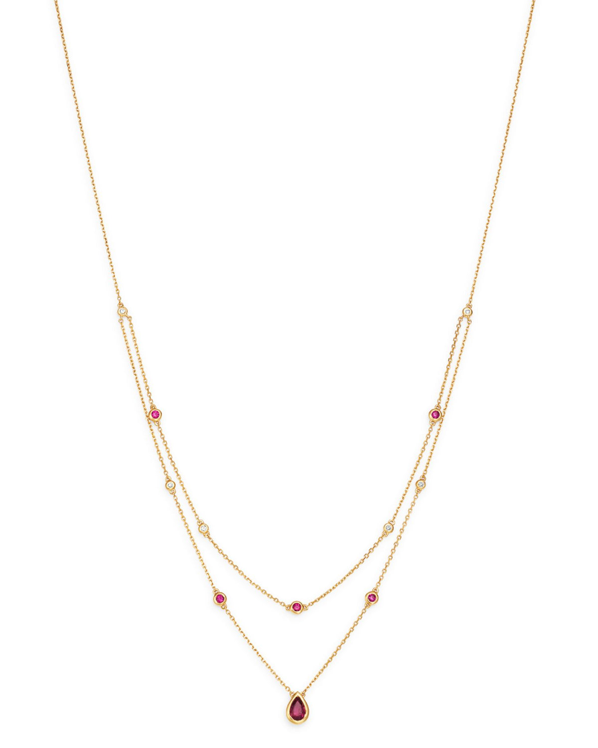 Ruby & Diamond Layered Necklace in 18K Yellow Gold, 18' - Exclusive