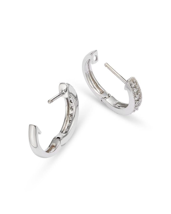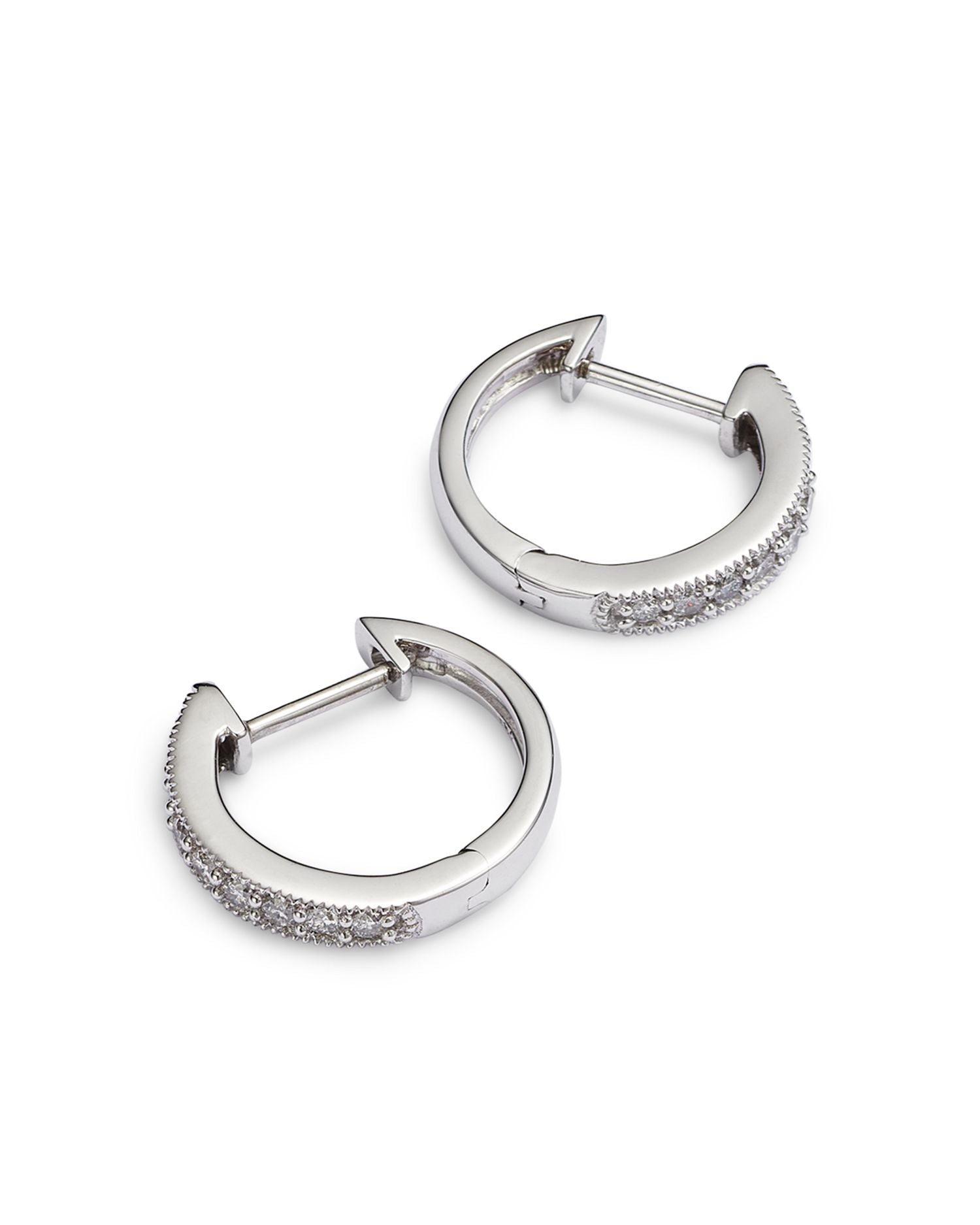 These Diamond Bezel Set Huggie Hoop Earrings by Bloomingdale's Fine Collection bring a touch of glamour to everyday wear. Featuring bezel-set diamonds in polished white gold, these huggie hoops are a chic and versatile accessory.