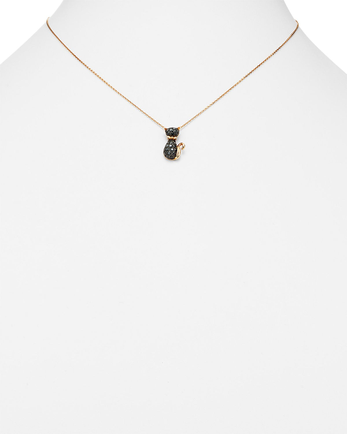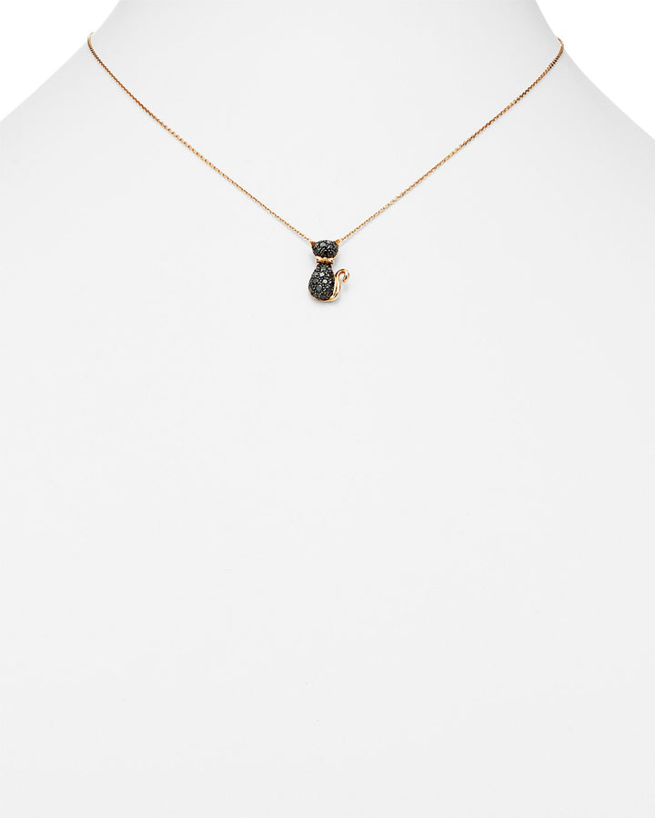 Black Diamond Cat Pendant Necklace in 14K Rose Gold, .40 ct. t.w. - Exclusive