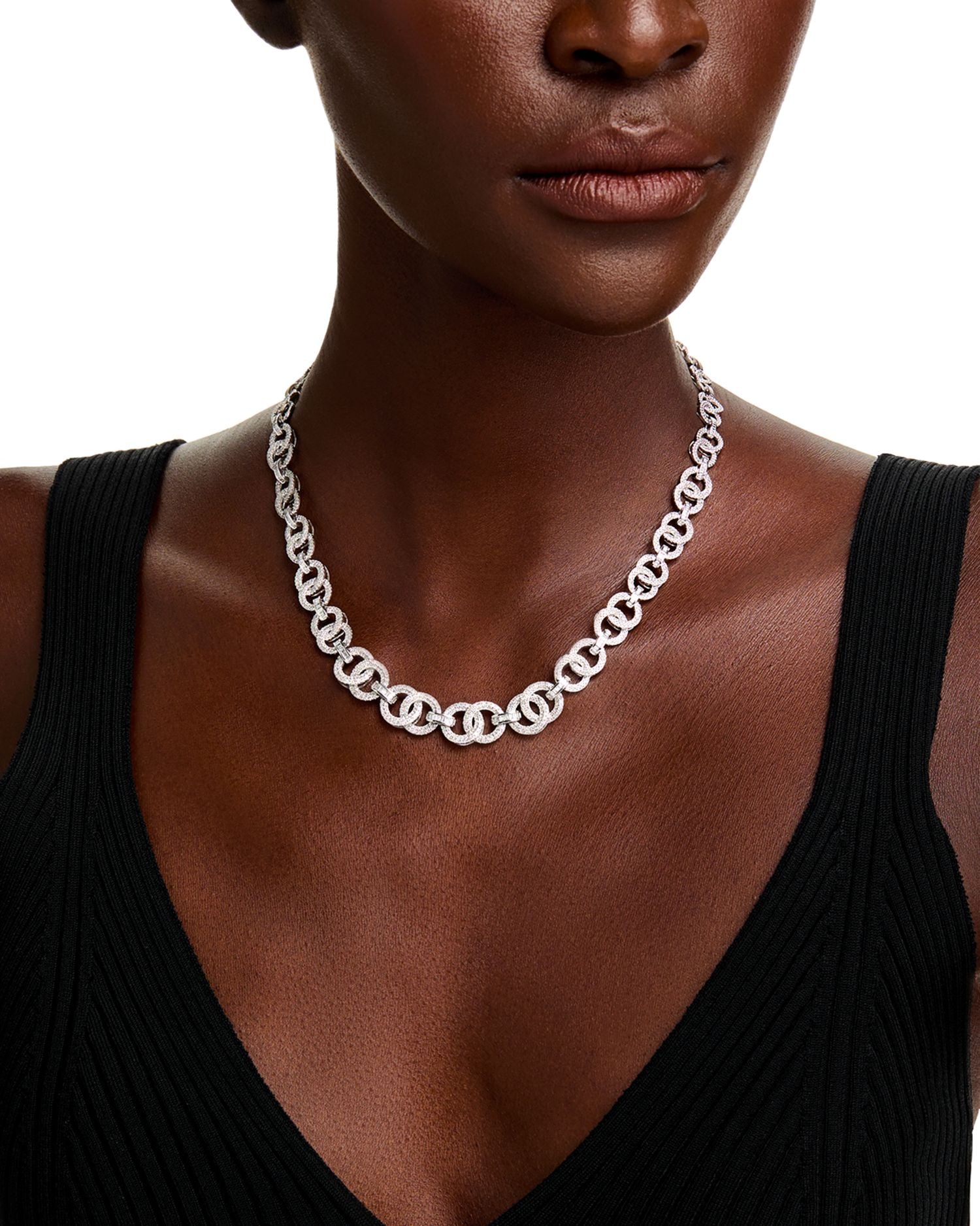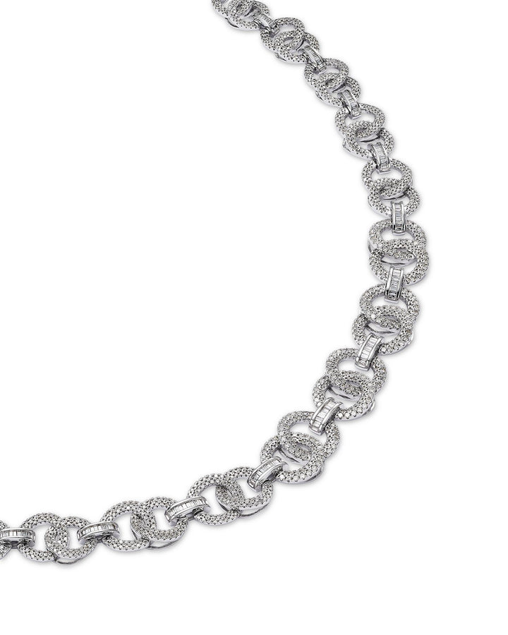 Diamond Round & Baguette Link Collar Necklace in 14K White Gold, 3.50 ct. t.w. - Exclusive