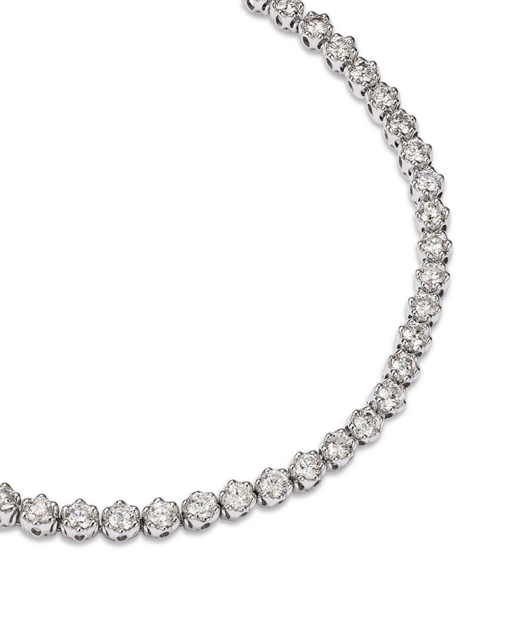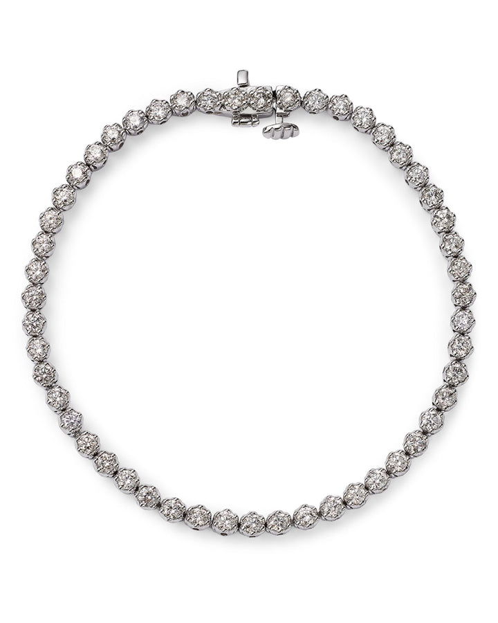 Handcrafted in 14K white gold; diamonds: 3.0 ct. t.w., color/clarity: HI/I1; 7' length; box lock clasp closure. White gold is surface-coated with rhodium to enhance metal color and shine; it may wear off over time requiring replating.