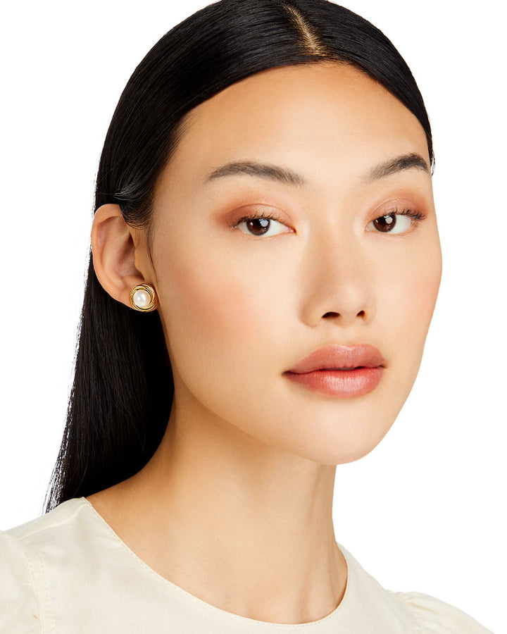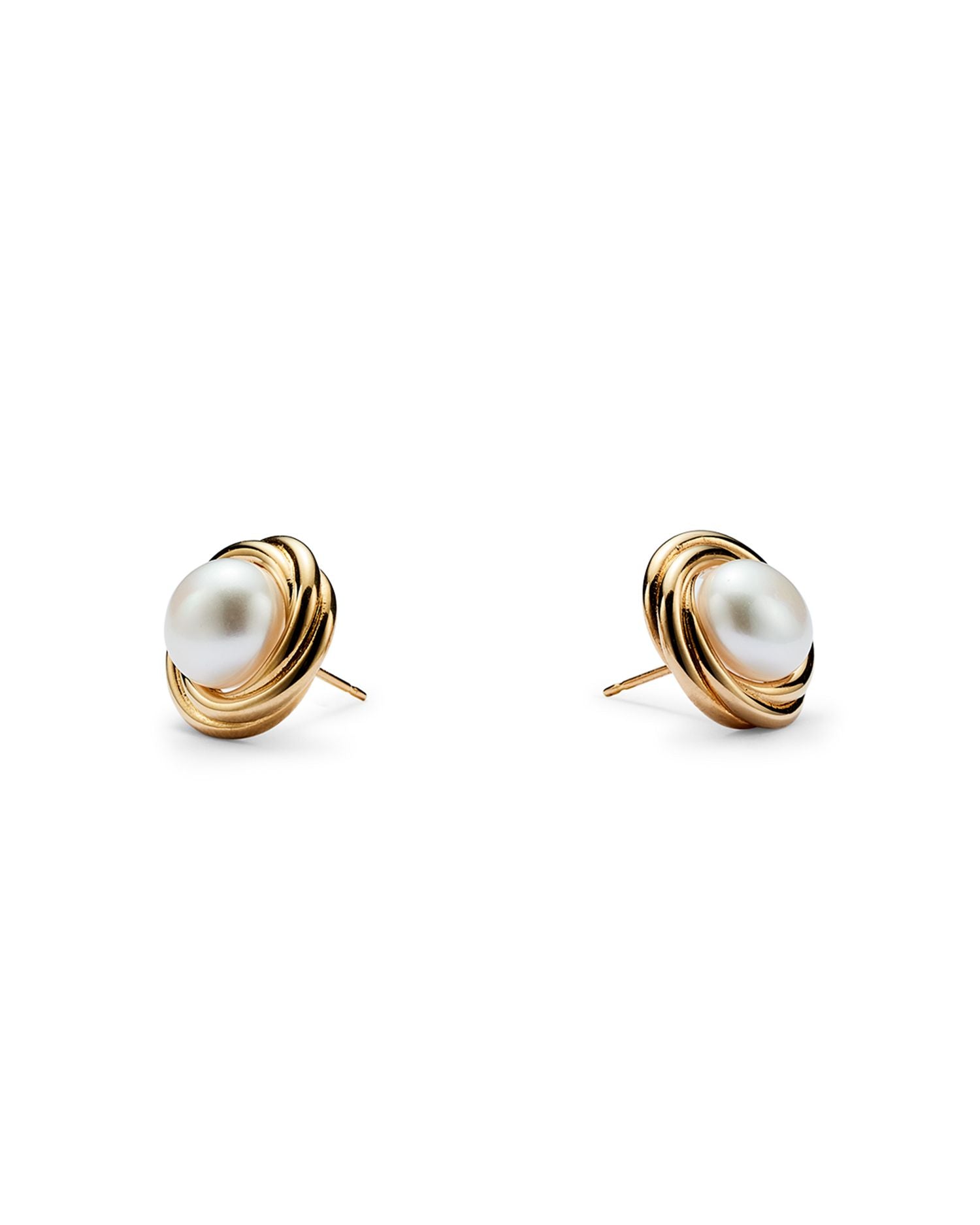 14K Yellow Gold Knot Stud Earrings with Cultured Freshwater Pearls - Exclusive