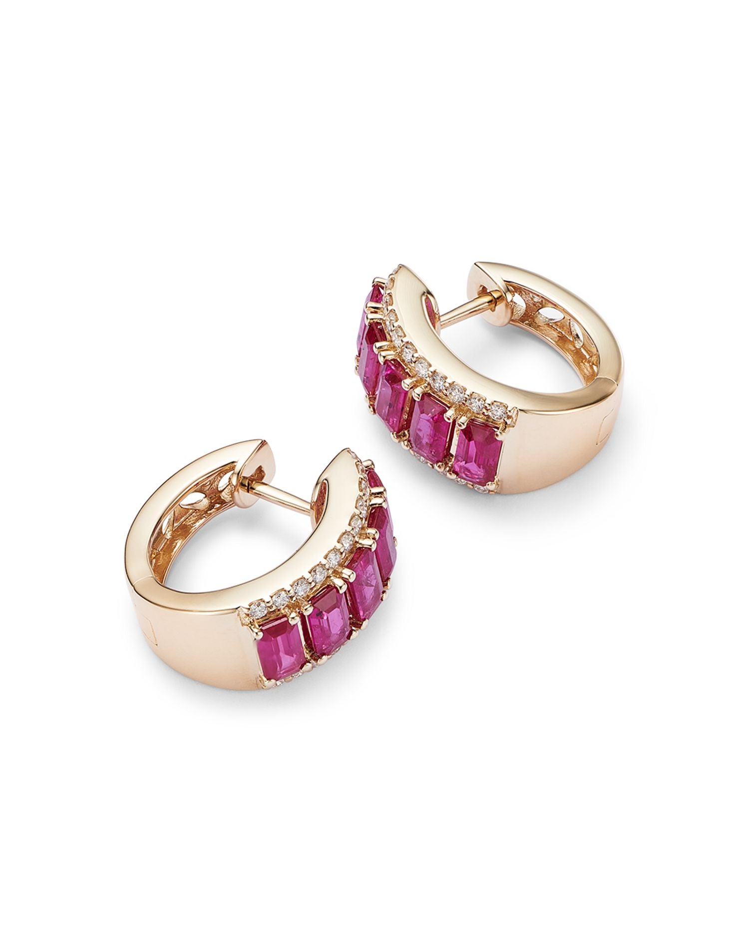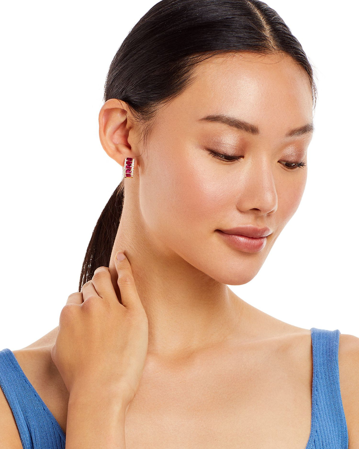 These Ruby & Diamond Huggie Hoop Earrings by Bloomingdale's Fine Collection are the epitome of refined elegance. Featuring emerald-cut rubies and sparkling diamonds, these huggie hoop earrings add a touch of color and sophistication to any outfit. The combination of ruby’s passion and diamond’s brilliance creates a timeless, glamorous look.
