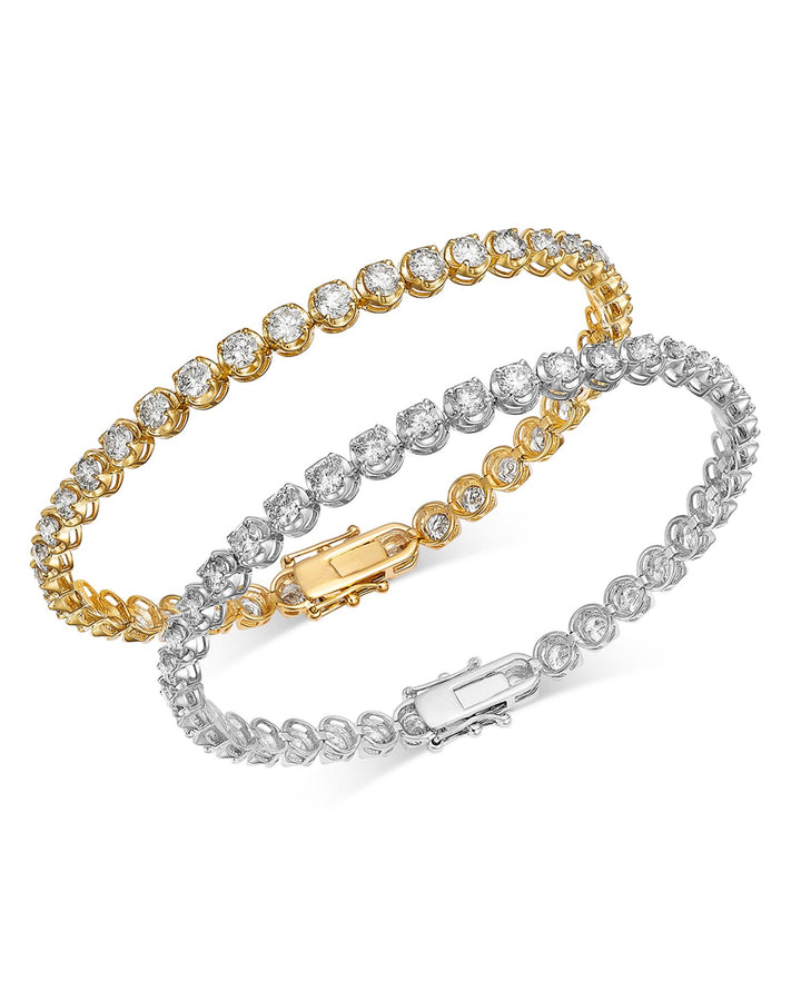 Crafted in 14K white or yellow gold with diamonds totaling 6.0 ct. t.w., color/clarity: HI/I2. Measures 7' in length with a box and tongue clasp closure.