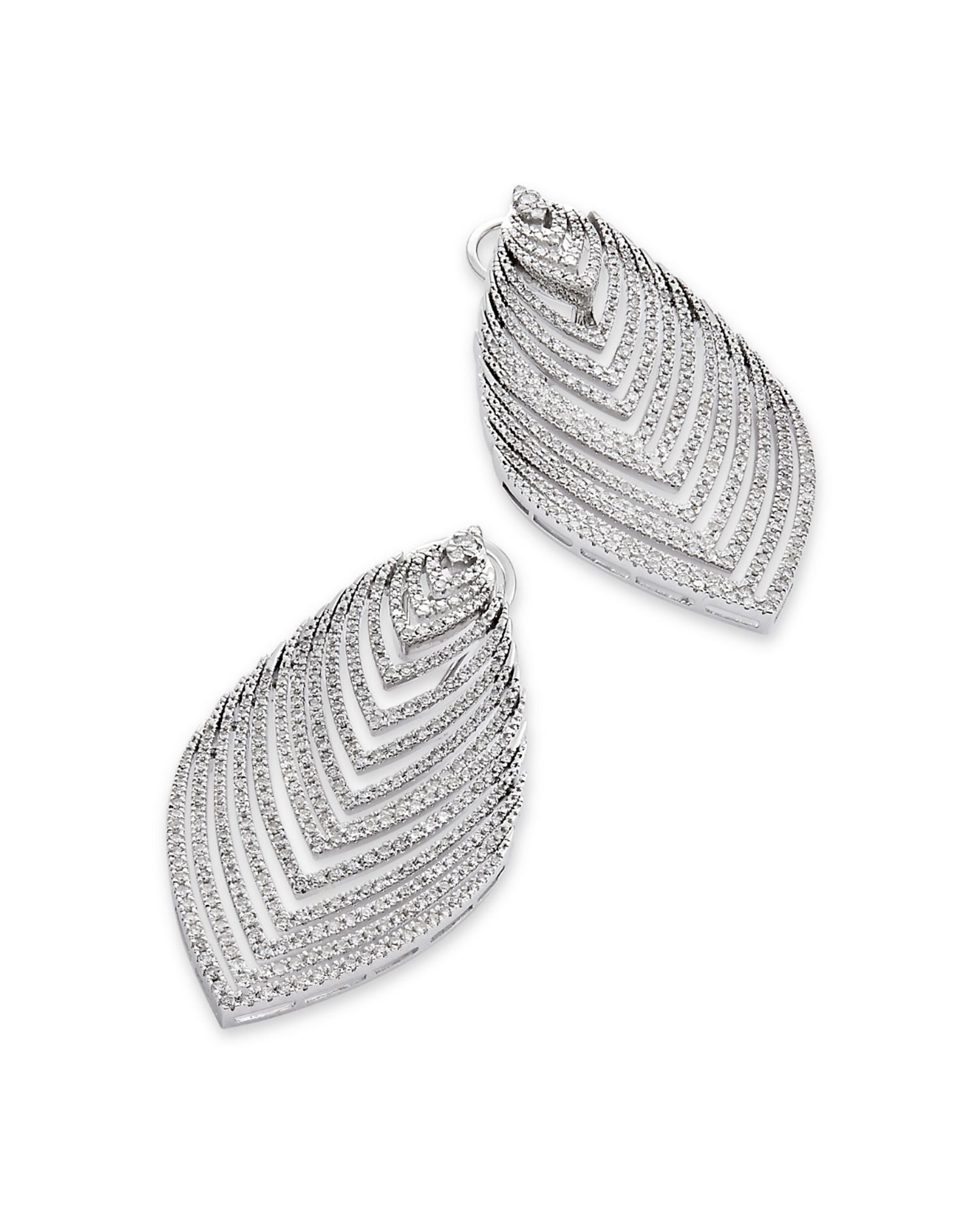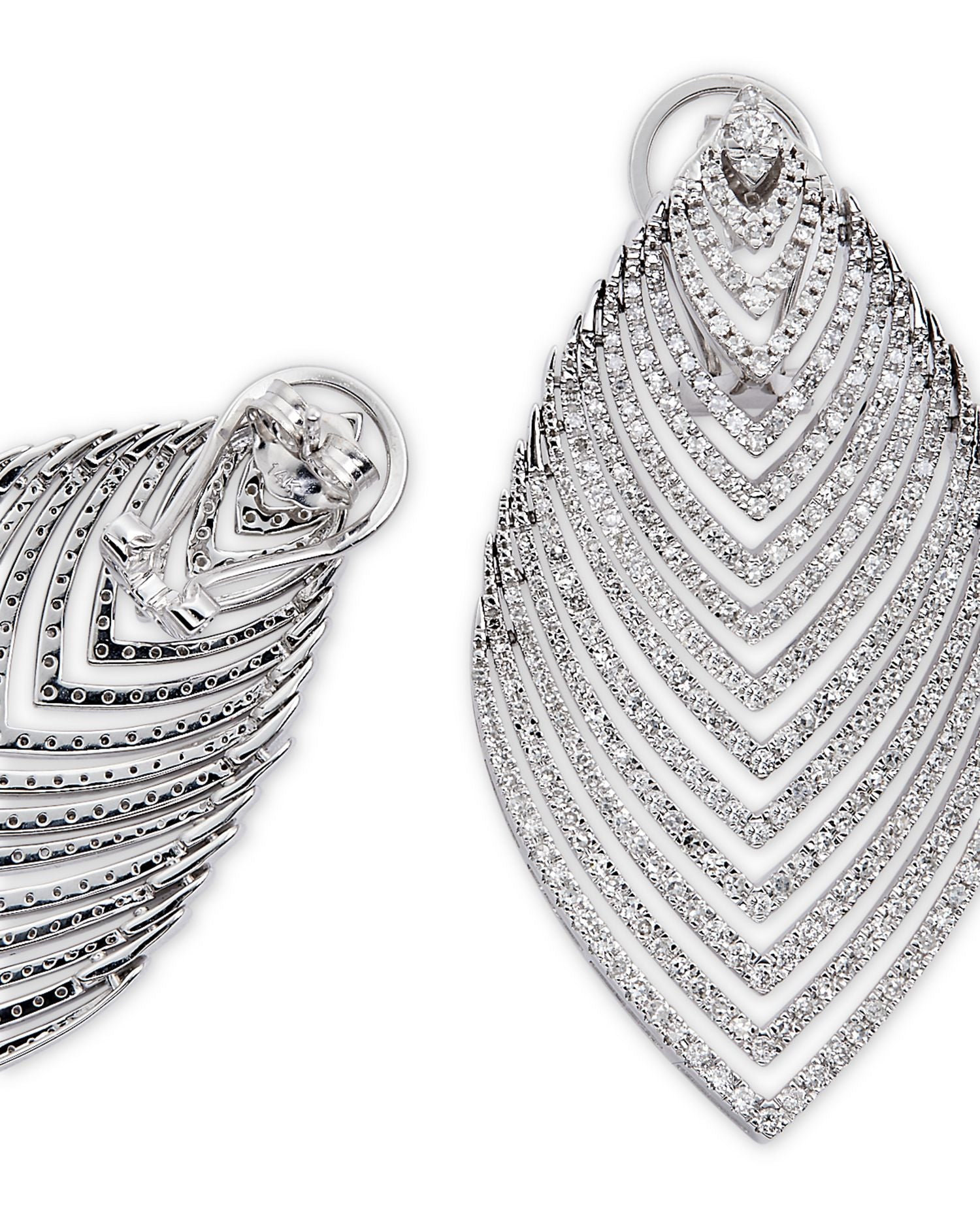 These Diamond Multirow Statement Drop Earrings by Bloomingdale's Fine Collection exude bold elegance with multiple rows of diamonds that create a stunning statement. Crafted in 14K white gold, the 2.5 ct. t.w. of diamonds are set to catch the light from every angle, making these earrings perfect for a special occasion or to elevate your everyday look. The omega back closure ensures a secure and comfortable fit.