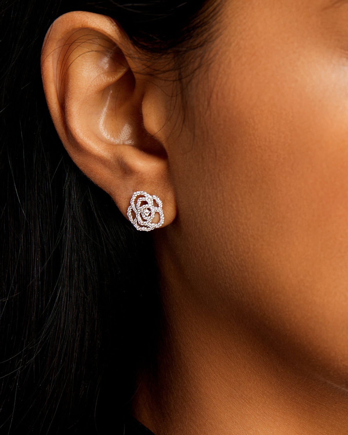 Diamond Rose Flower Openwork Stud Earrings in 14K White Gold, 0.30 ct. t.w.