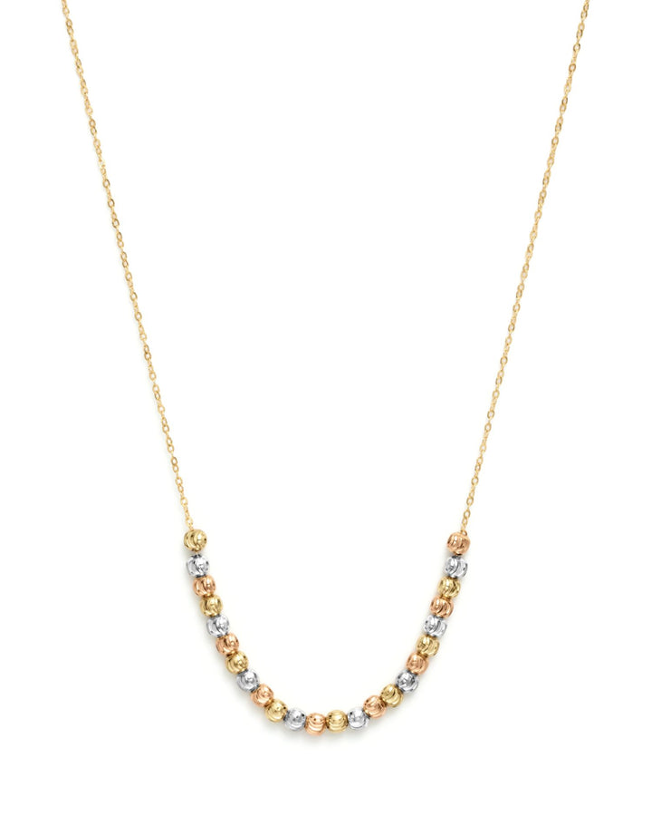 14K Yellow, White and Rose Gold Half Beaded Chain Necklace, 17" - Exclusive