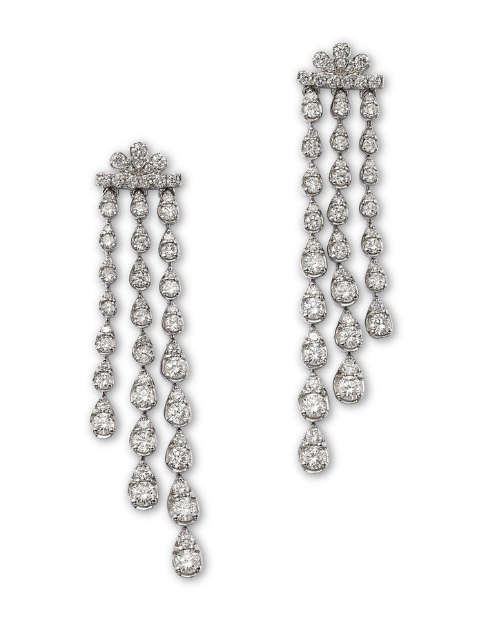 These 14K White Gold Diamond Drop Earrings by Bloomingdale's Fine Collection resemble a soft rain cloud, with a fringe of pear-cut diamonds that gently sway with movement. At 2.00 ct. t.w., the diamonds add an ethereal sparkle, making these earrings perfect for a statement evening look. They exude grace and beauty, symbolizing renewal and the elegance of nature.