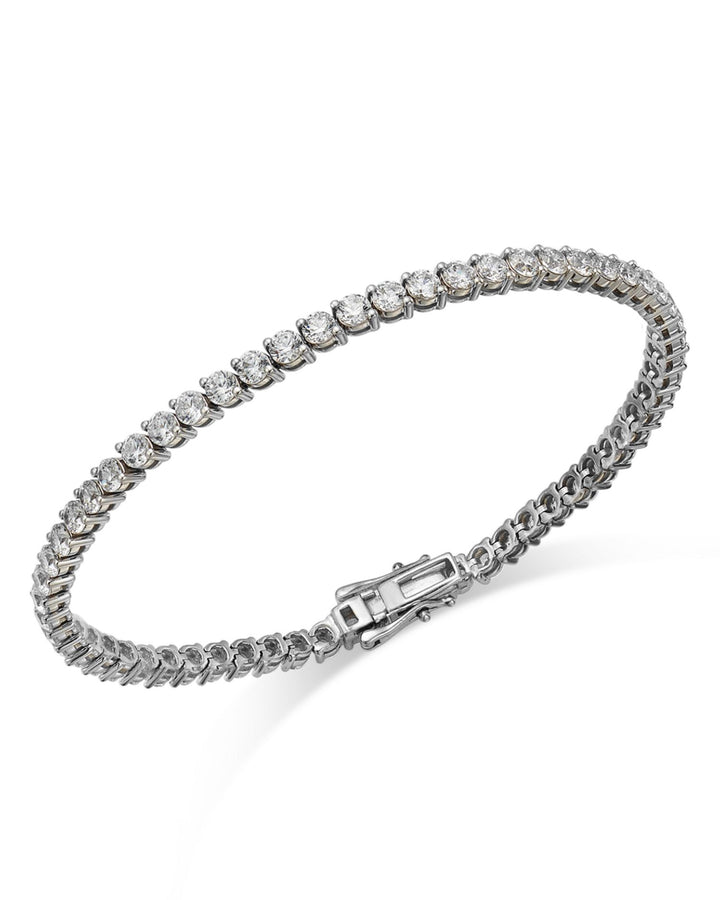 Handcrafted in 14K white gold, featuring 5.0 ct. t.w. diamonds (color/clarity: HI/I1I2). The bracelet measures 7.25' in length and features a box lock clasp closure. The white gold is rhodium-coated for enhanced color and shine. Made in India.