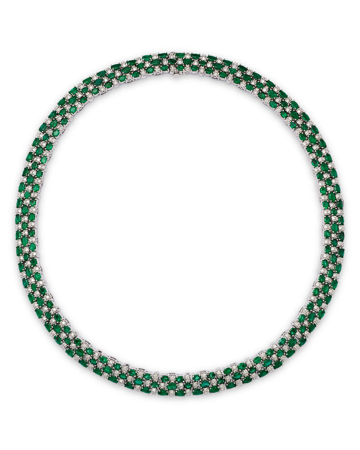 Emerald & Diamond Statement Necklace in 14K White Gold, 19'