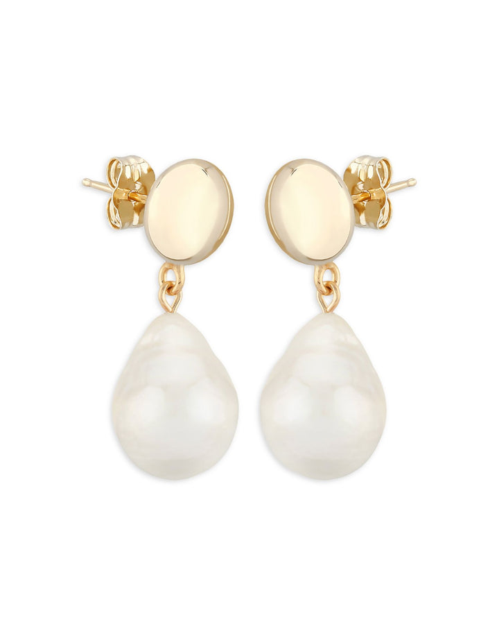Handcrafted in 14K yellow gold, featuring 12mm cultured freshwater baroque pearls and black onyx beads. The bracelet measures 1.07" in length and features a post back closure. Made in the USA.