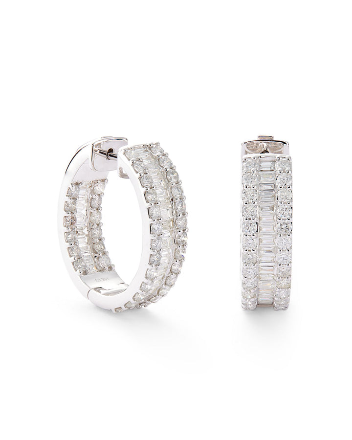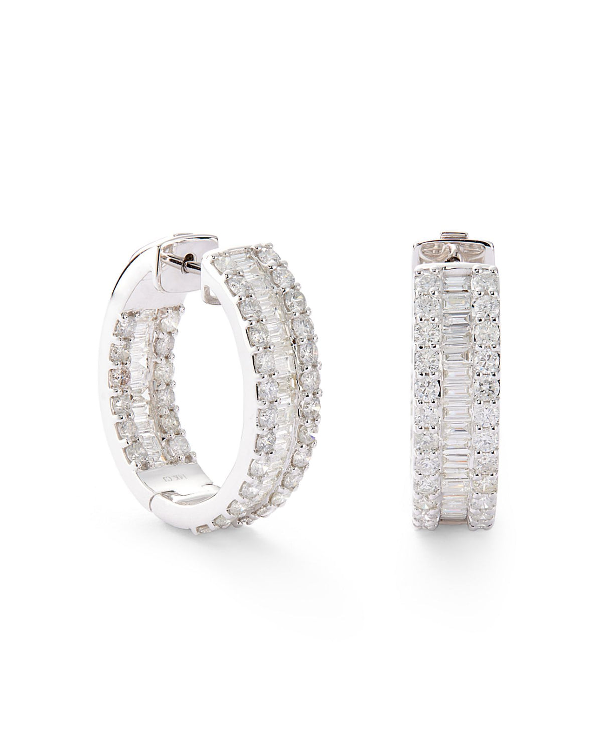 Diamond Baguette & Round Small Hoop Earrings, 5.54 ct. t.w.