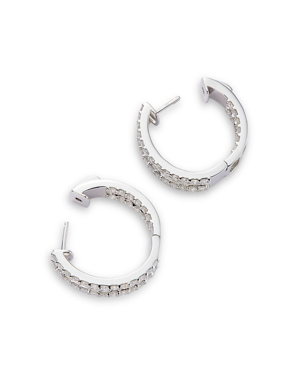 Handcrafted in 14K white gold, featuring 5.54 ct. t.w. diamonds (color/clarity: GH/SI2I1). The earrings measure 1' in diameter and feature a press lock closure.