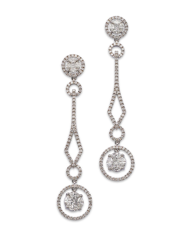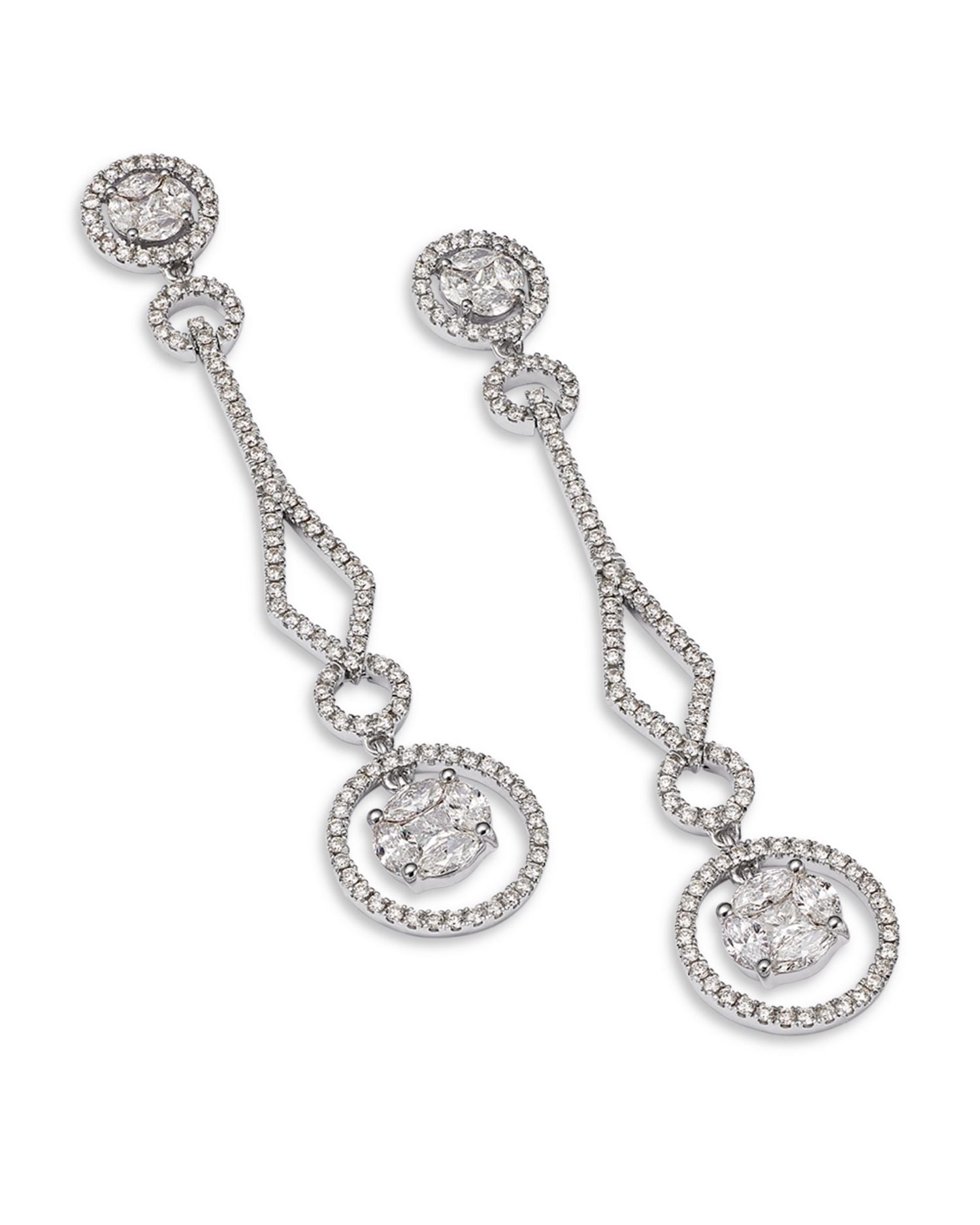 Diamond Multi Cut Geometric Drop Earrings in 14K White Gold, 2.63 ct. t.w. - Exclusive