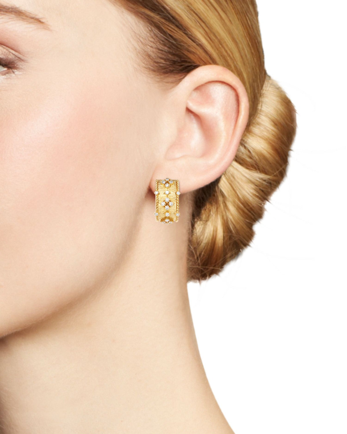 Diamond Omega-Back Earrings in 18K Textured Yellow Gold, 0.70 ct. t.w. - Exclusive