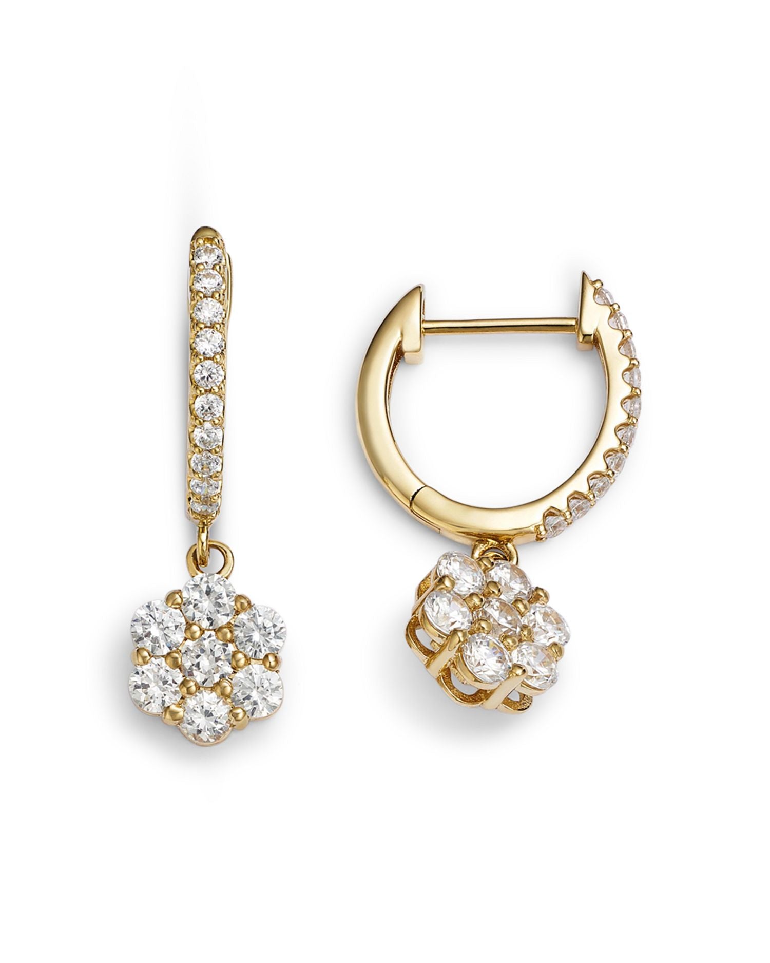 Diamond Flower Dangle Hoop Earrings in 14K Yellow Gold, 1.25 ct. t.w.
