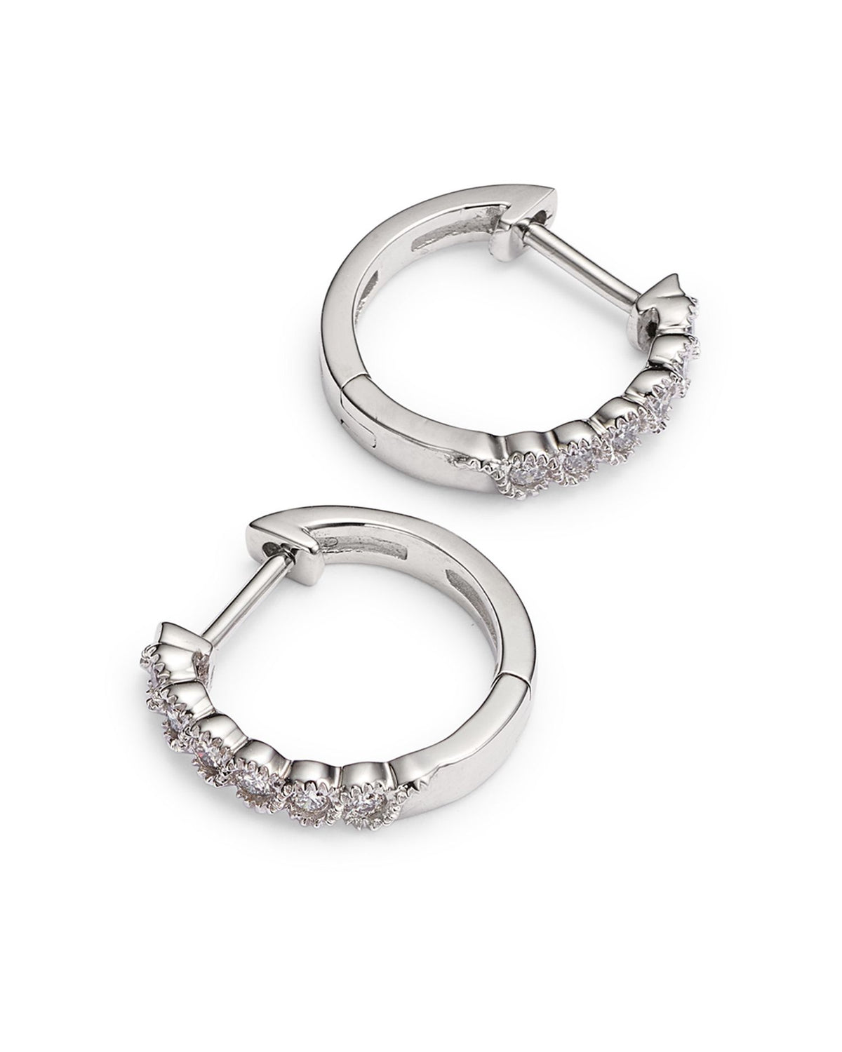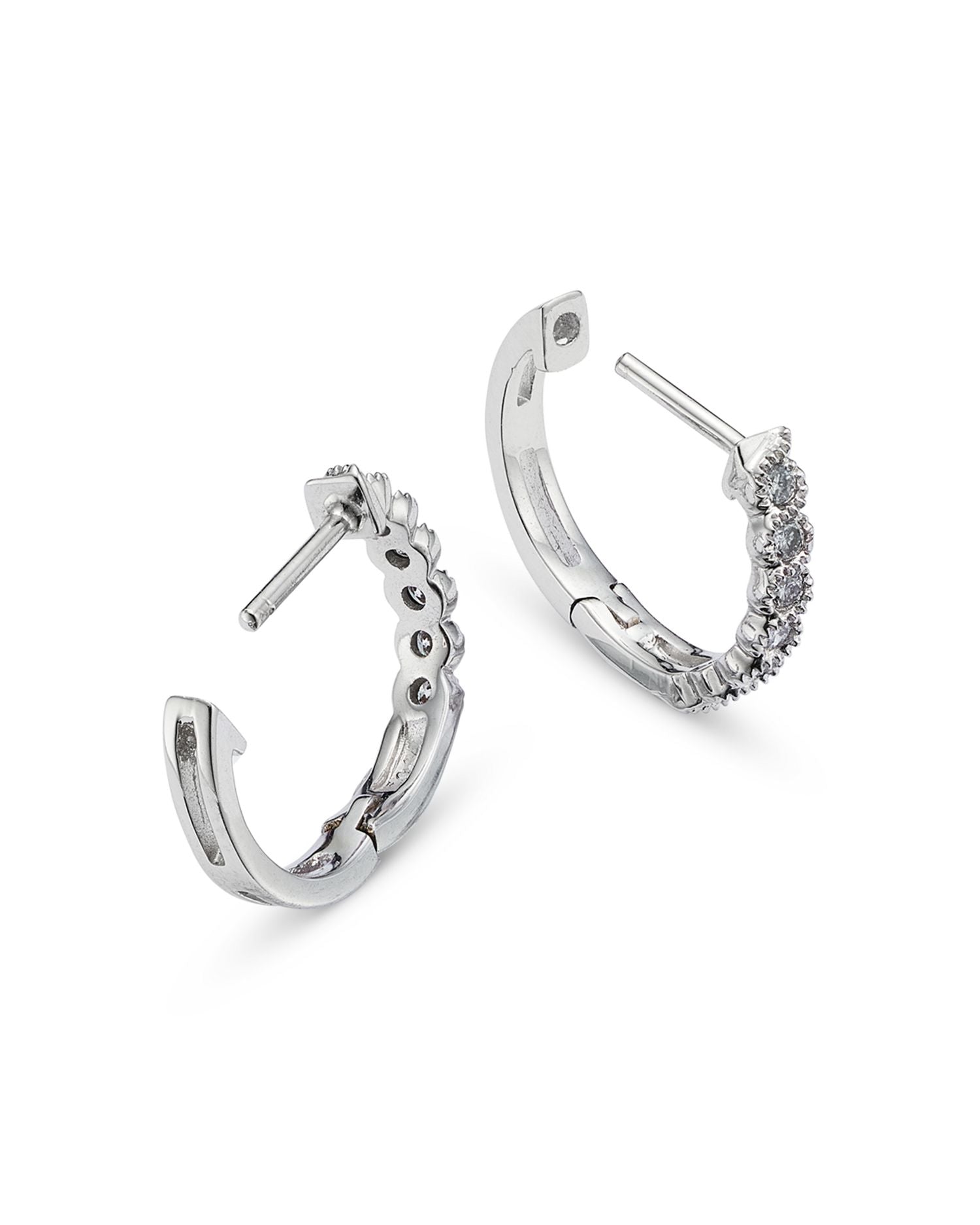 These Diamond Milgrain Huggie Hoop Earrings by Bloomingdale's Fine Collection are classic and elegant, with milgrain-set diamonds enhancing the polished 14K white gold design. Perfect for adding a touch of luxury to any look, these earrings are ideal for both daily wear and special occasions.