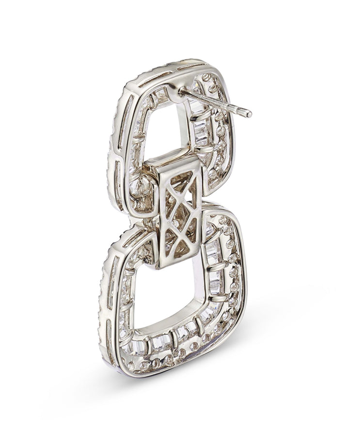 Diamond Round & Baguette Geometric Drop Earrings in 14K White Gold, 4.25 ct. t.w.