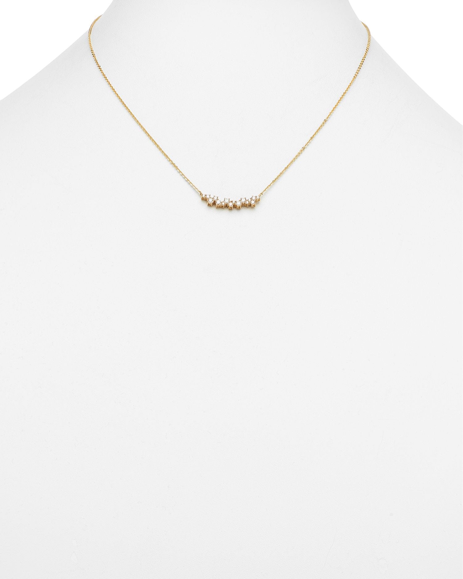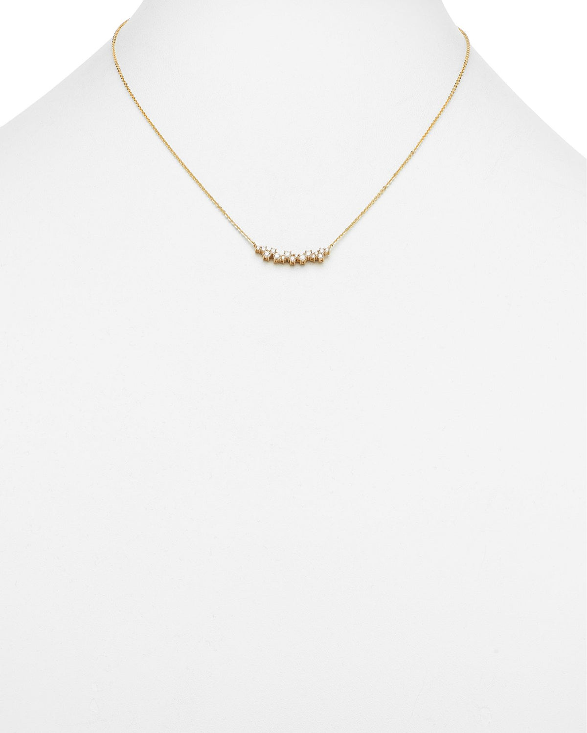 This Diamond Scatter Necklace by Bloomingdale's Fine Collection features scattered diamonds that shimmer delicately across a 14K yellow gold chain. The 0.50 ct. t.w. of diamonds create a beautiful, subtle sparkle, making this necklace perfect for everyday elegance or special occasions.