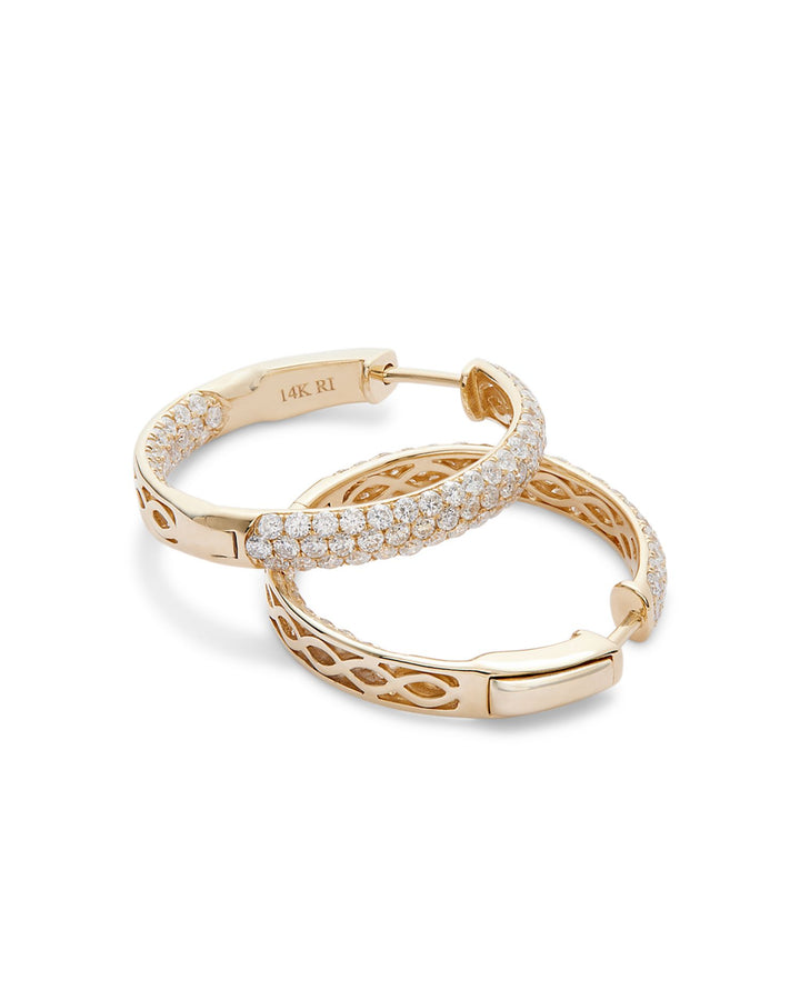 Diamond Inside Out Small Hoop Earrings in 14K Yellow Gold, 1.9 ct. t.w.