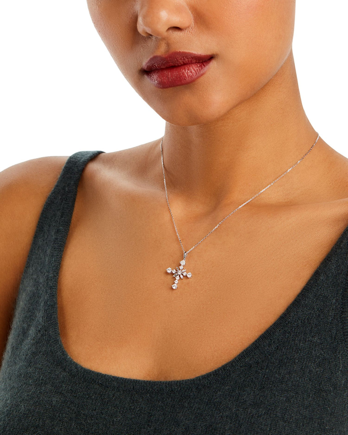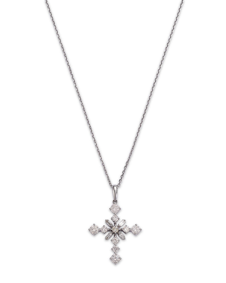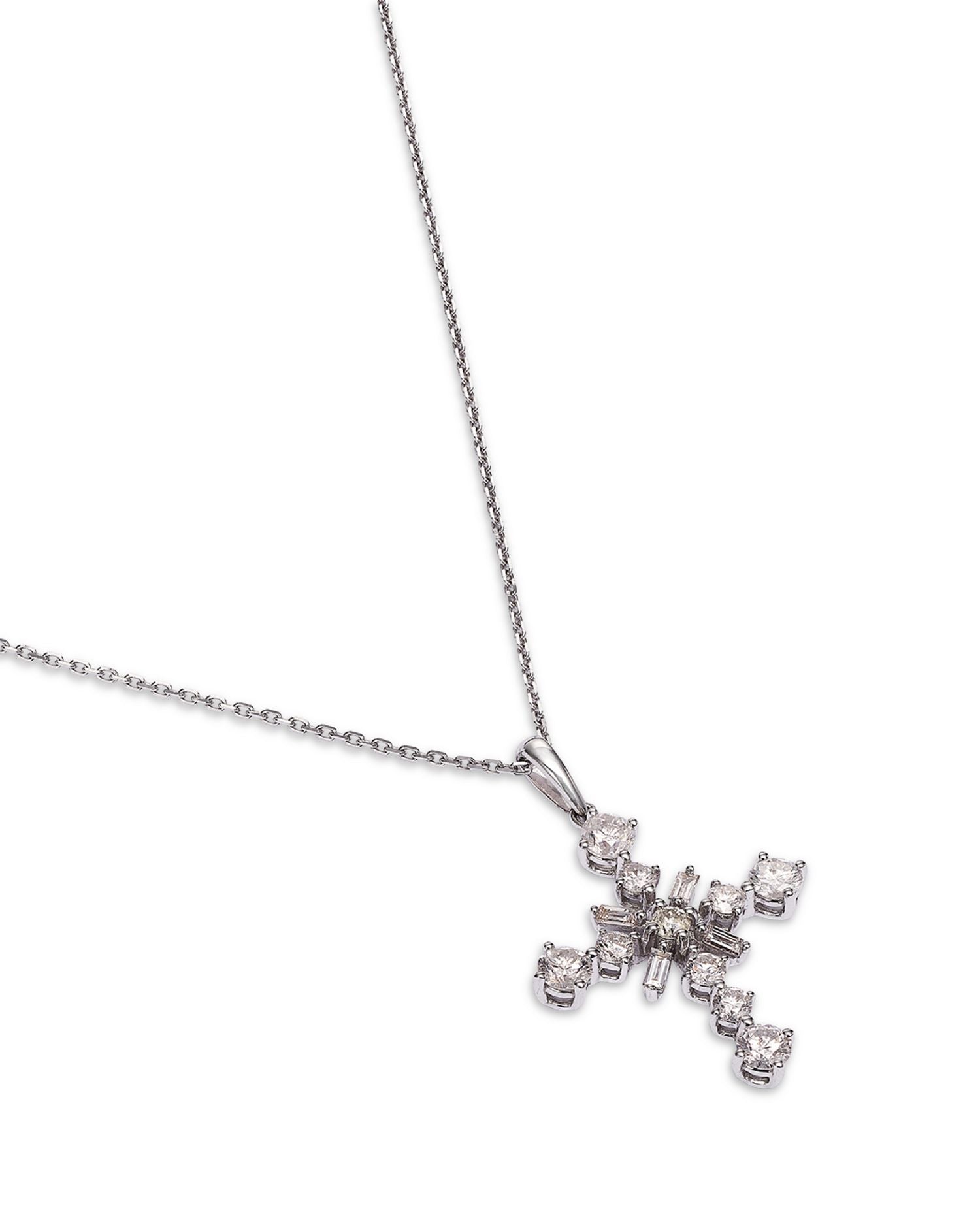 Diamond Round & Baguette Cross Pendant Necklace in 14K White Gold, 1.0 ct. t.w.