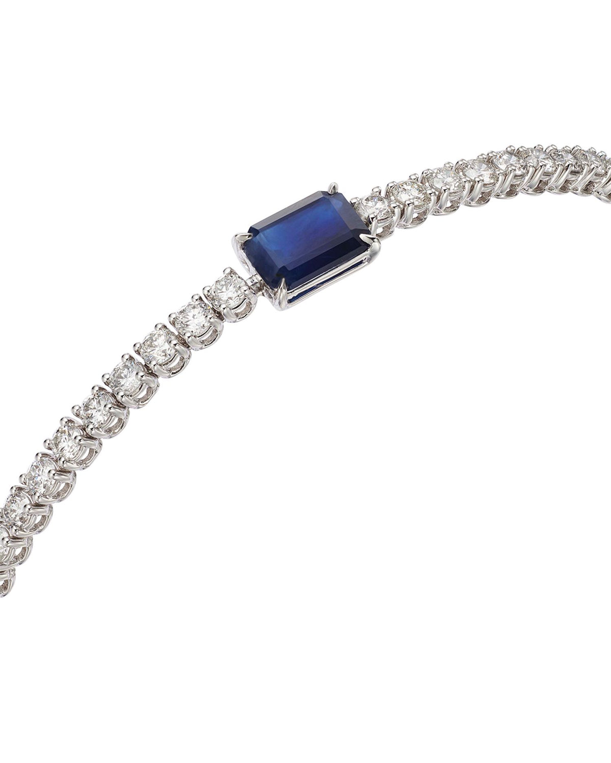 Gemstone & Diamond Station Tennis Bracelet in 14K White Gold
