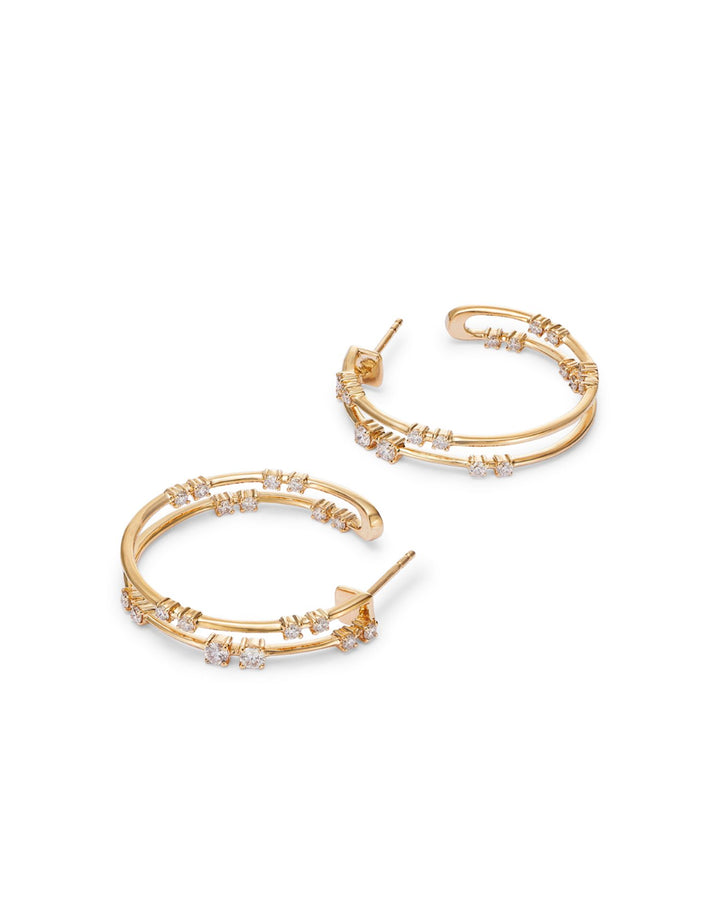 These Diamond Scattered Cluster Double Hoop Earrings by Bloomingdale's Fine Collection bring modern elegance to your collection. The scattered diamond design adds dazzling sparkle to these uber-chic double hoops.