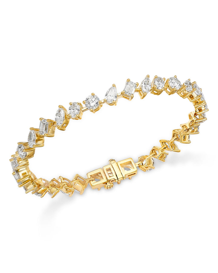This Lab Grown Diamond Mixed Cut Tennis Bracelet by Bloomingdale's Fine Collection from the Luxe collection is a contemporary take on a timeless classic. Featuring mixed-cut diamonds in various shapes, it exudes modern glamour.